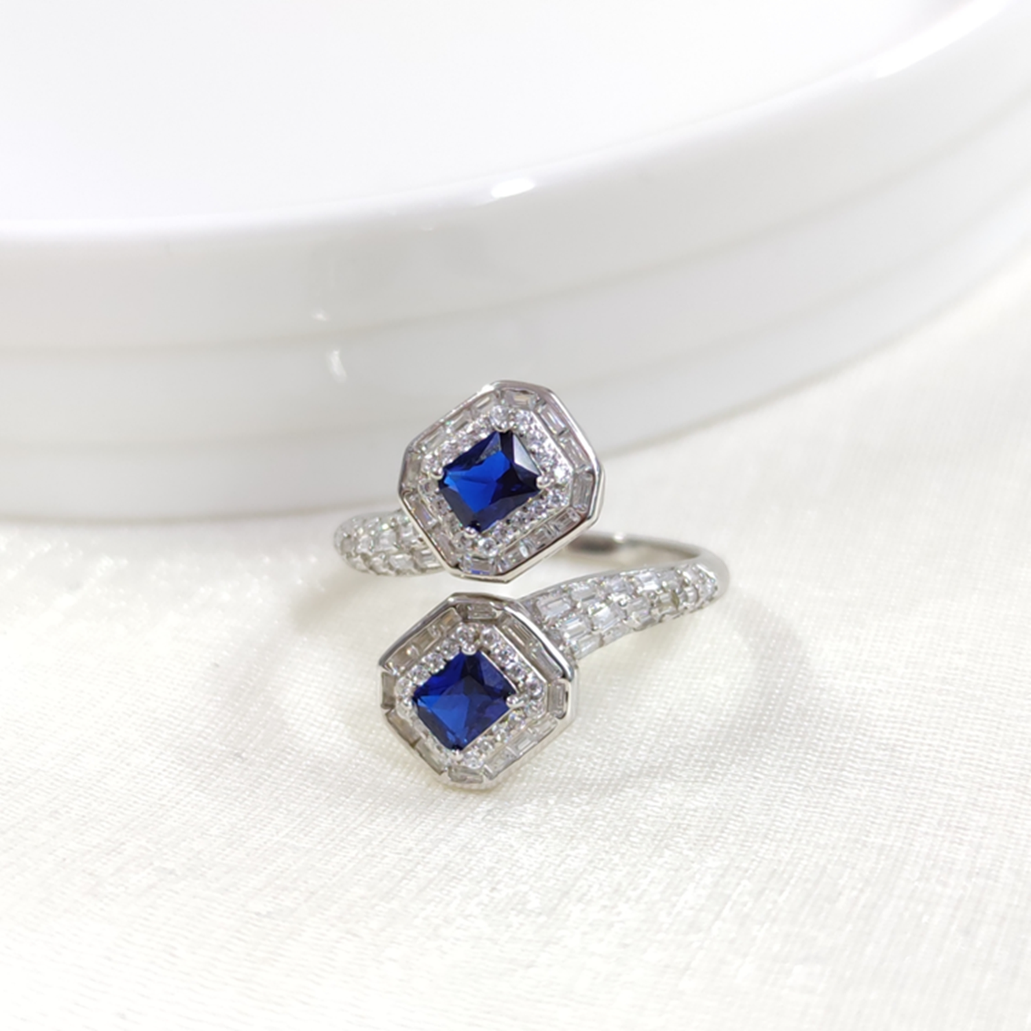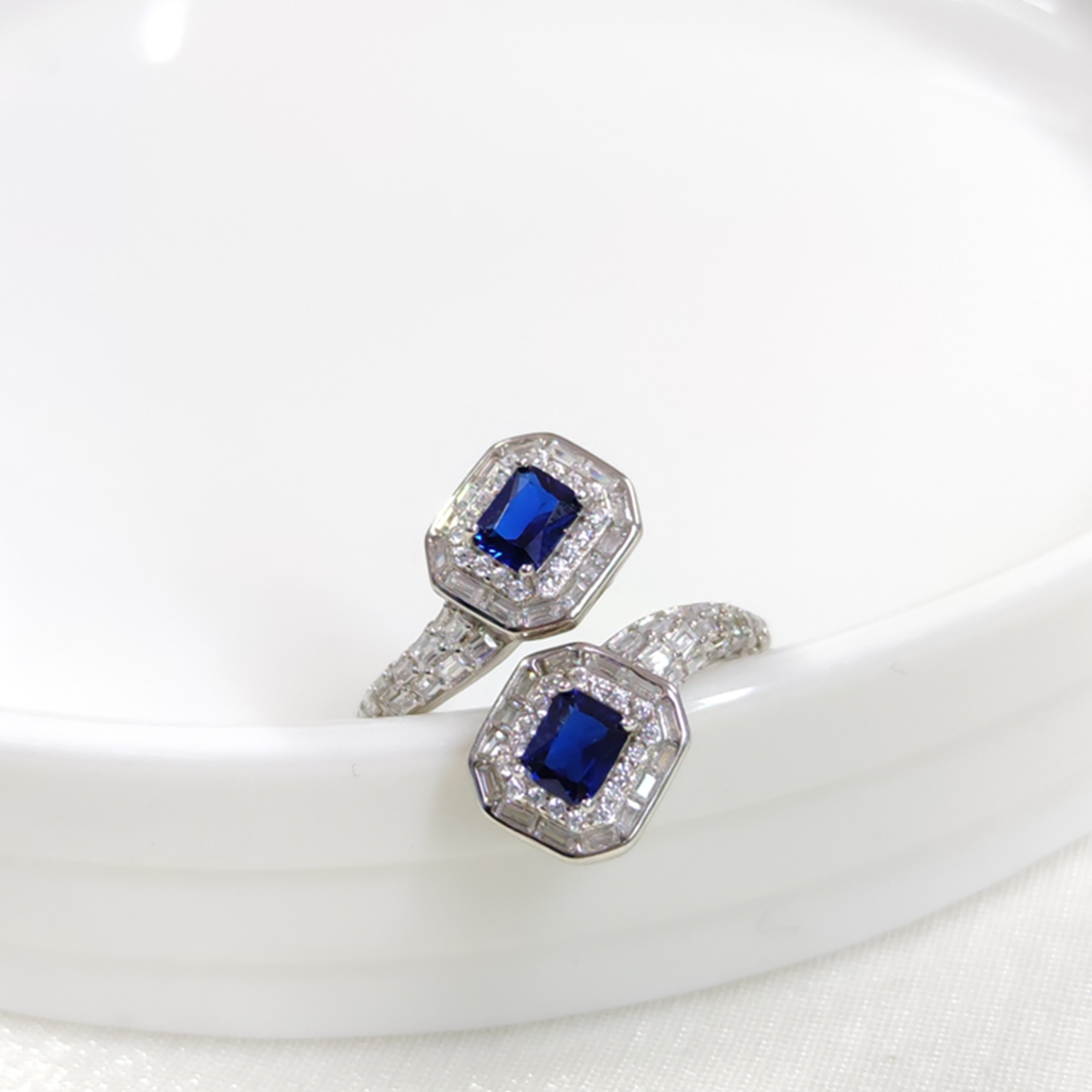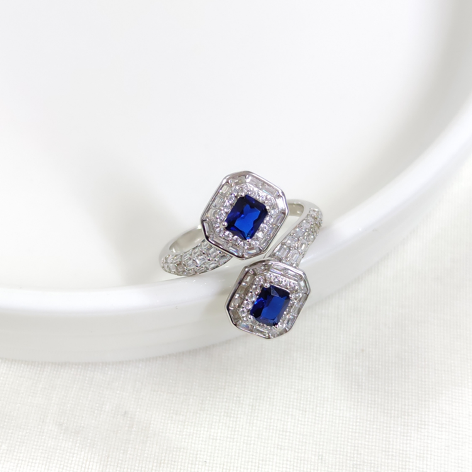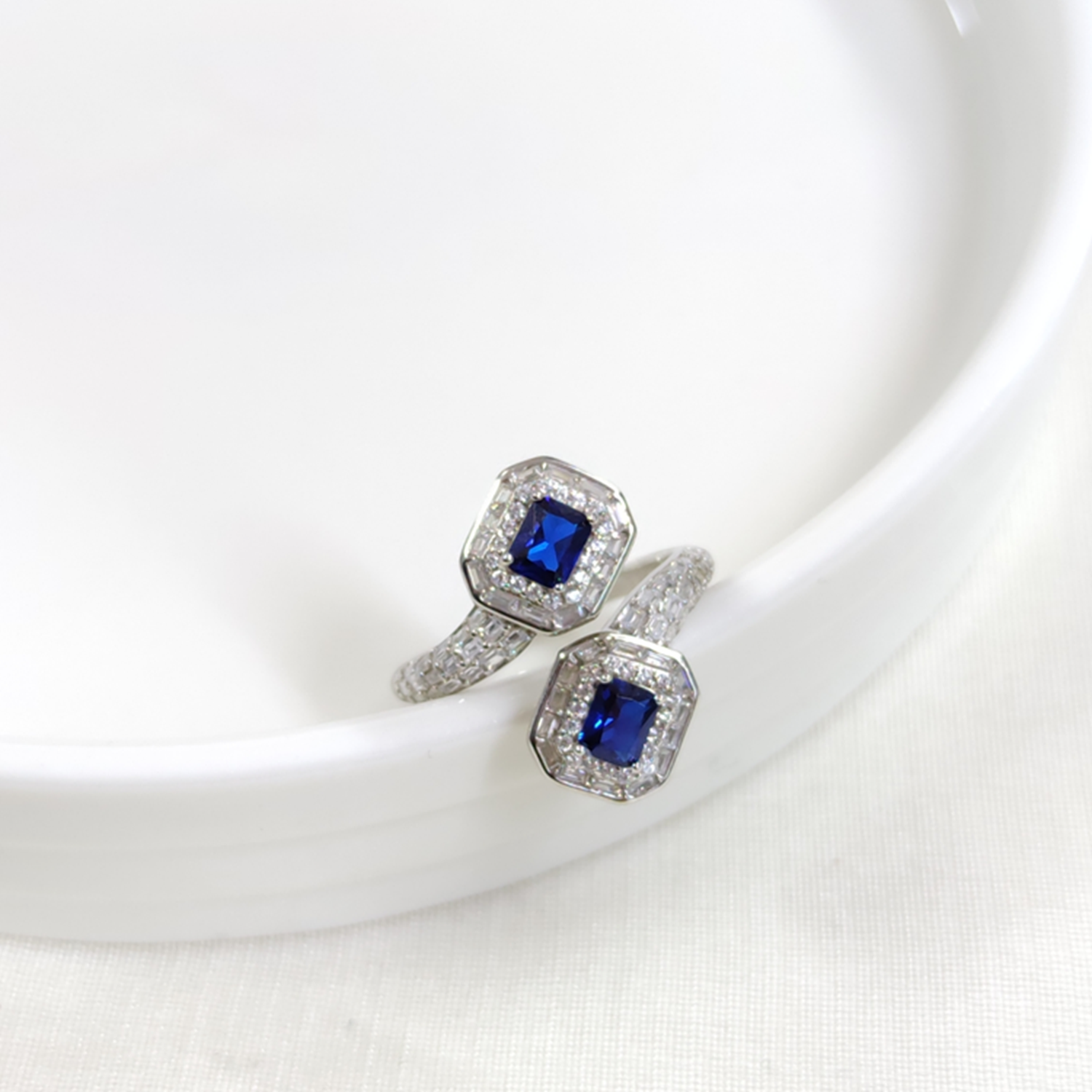 İTHAL SAFİR ZİRKON TAŞLI İKİLİ GÜMÜŞ YÜZÜK - 18