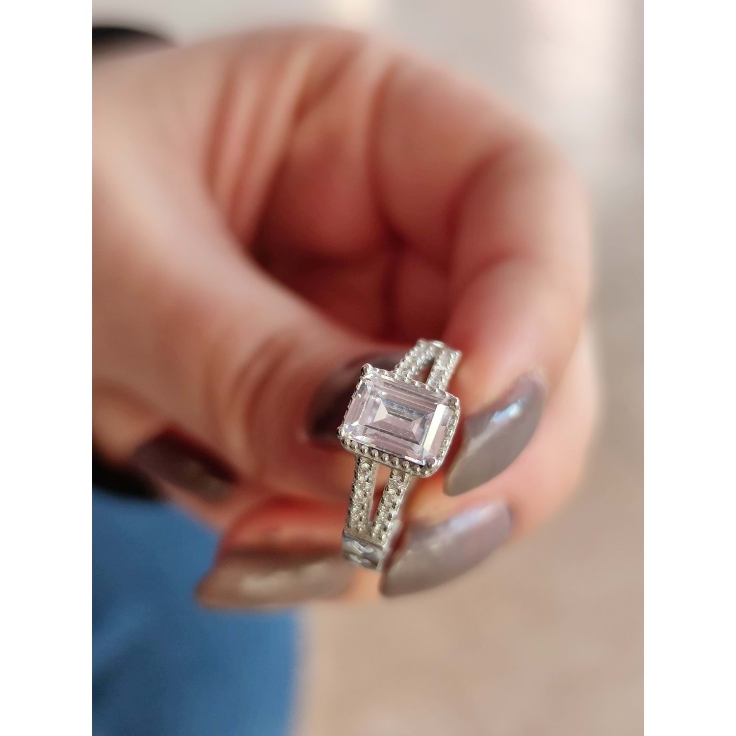 KALP DETAYLI BAGET TAŞLI GÜMÜŞ YÜZÜK - 17