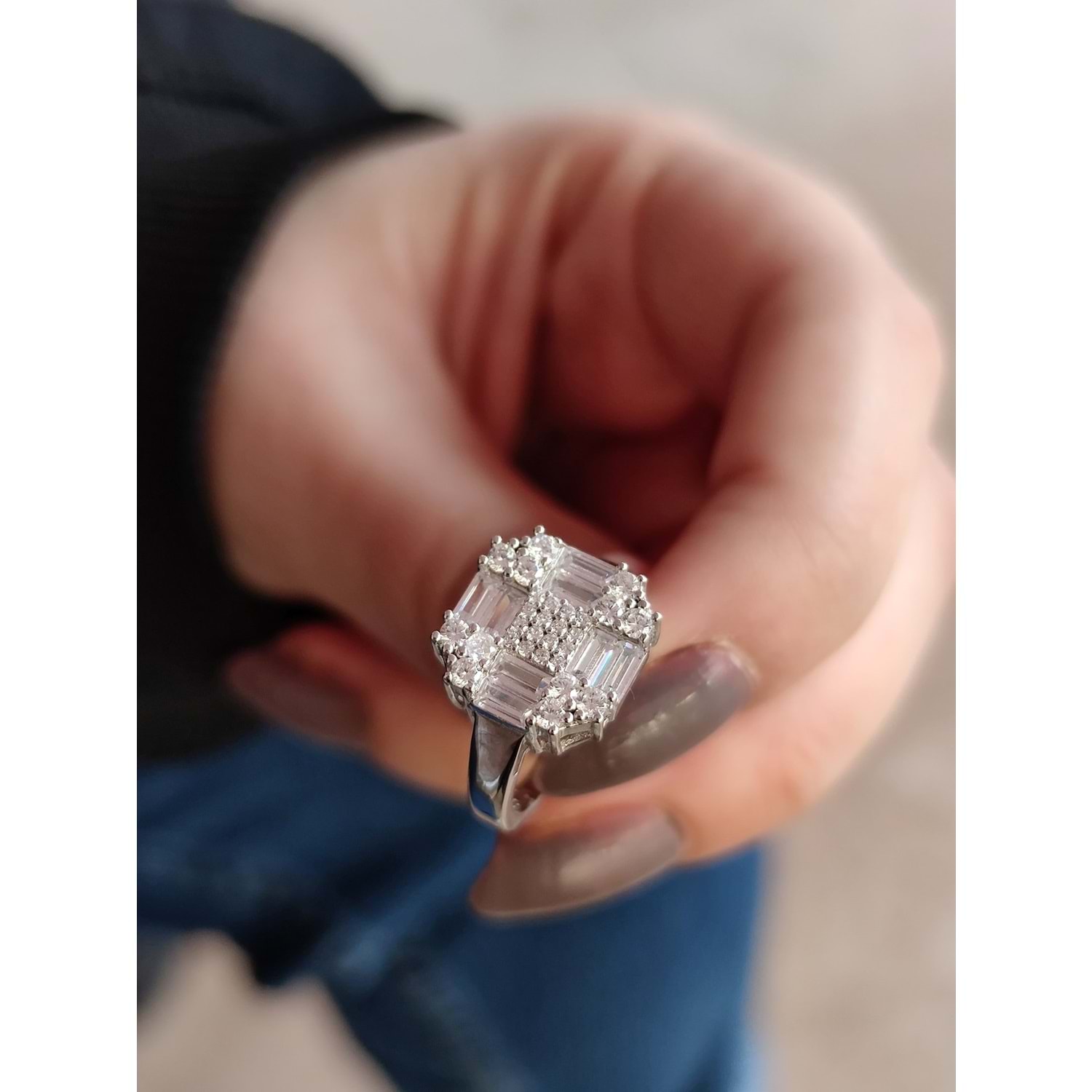 KARE PIRLANTA MONTÜR BAGET GÜMÜŞ YÜZÜK 13 MM - 17