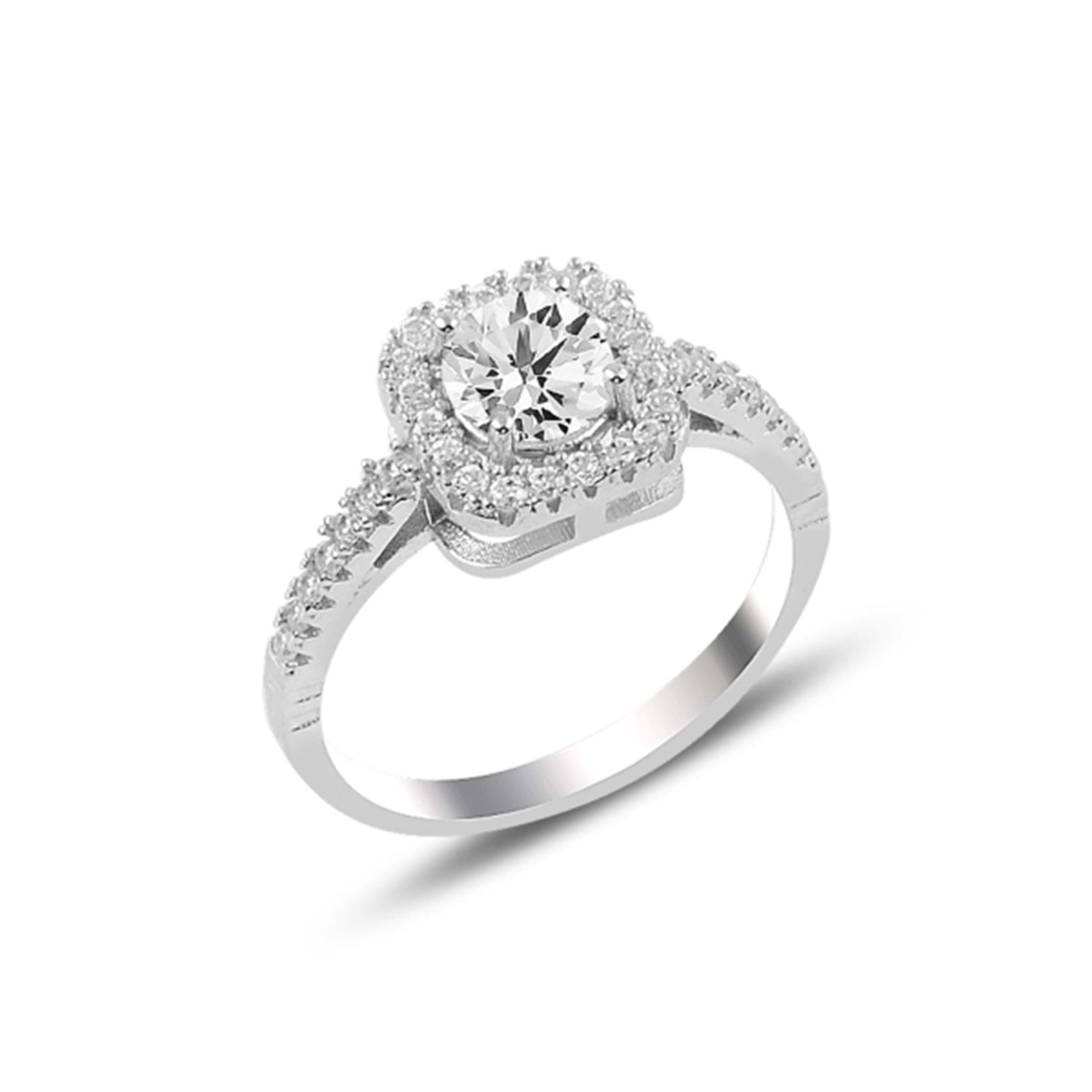 KARE YUVARLAK ZİRKON TAŞLI GÜMÜŞ YÜZÜK G1681 - 13