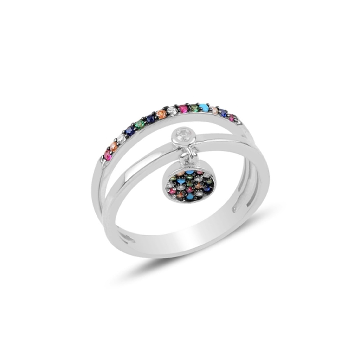 KARIŞIK ZİRKON TAŞLI SALLANTILI GÜMÜŞ İKİLİ YÜZÜK