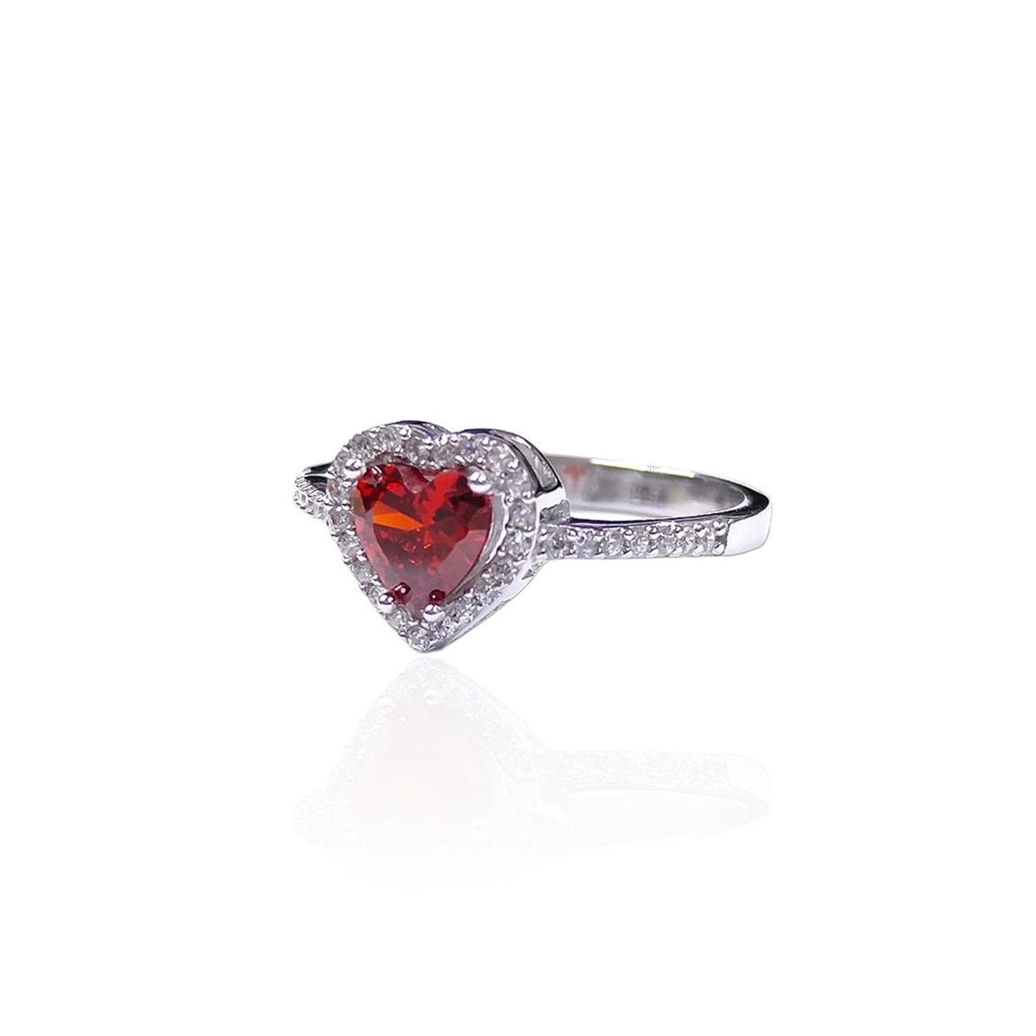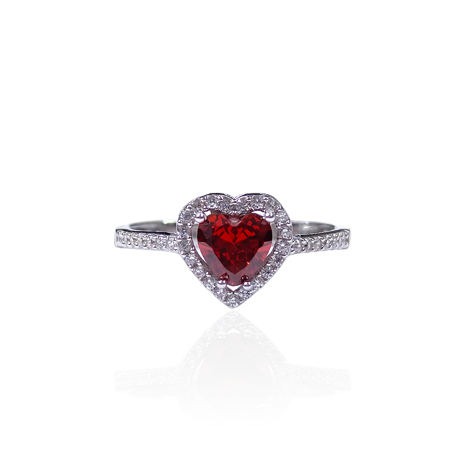 KIRMIZI TAŞLI KALP GÜMÜŞ YÜZÜK - RODYUM BEYAZ - 16
