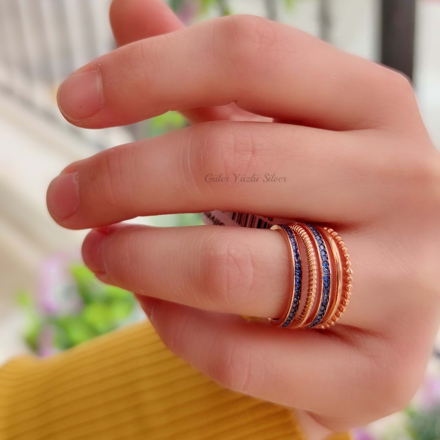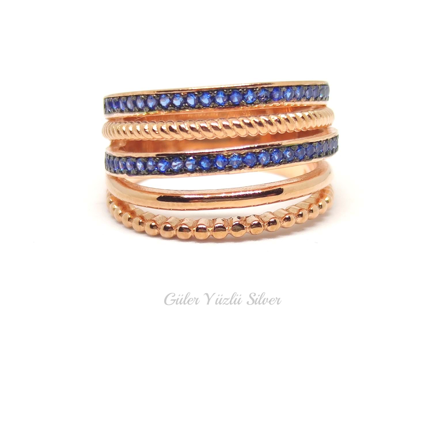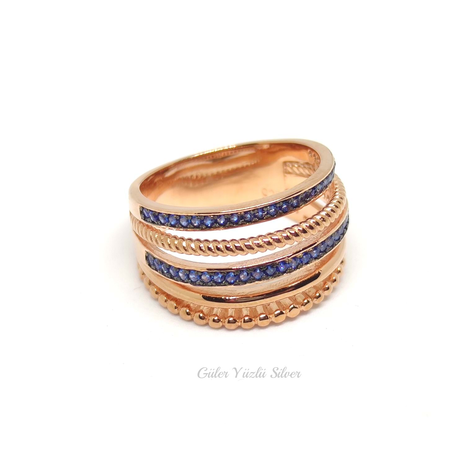 MAVİ TAŞLI İTHAL SARMAL GÜMÜŞ YÜZÜK - 17 numara