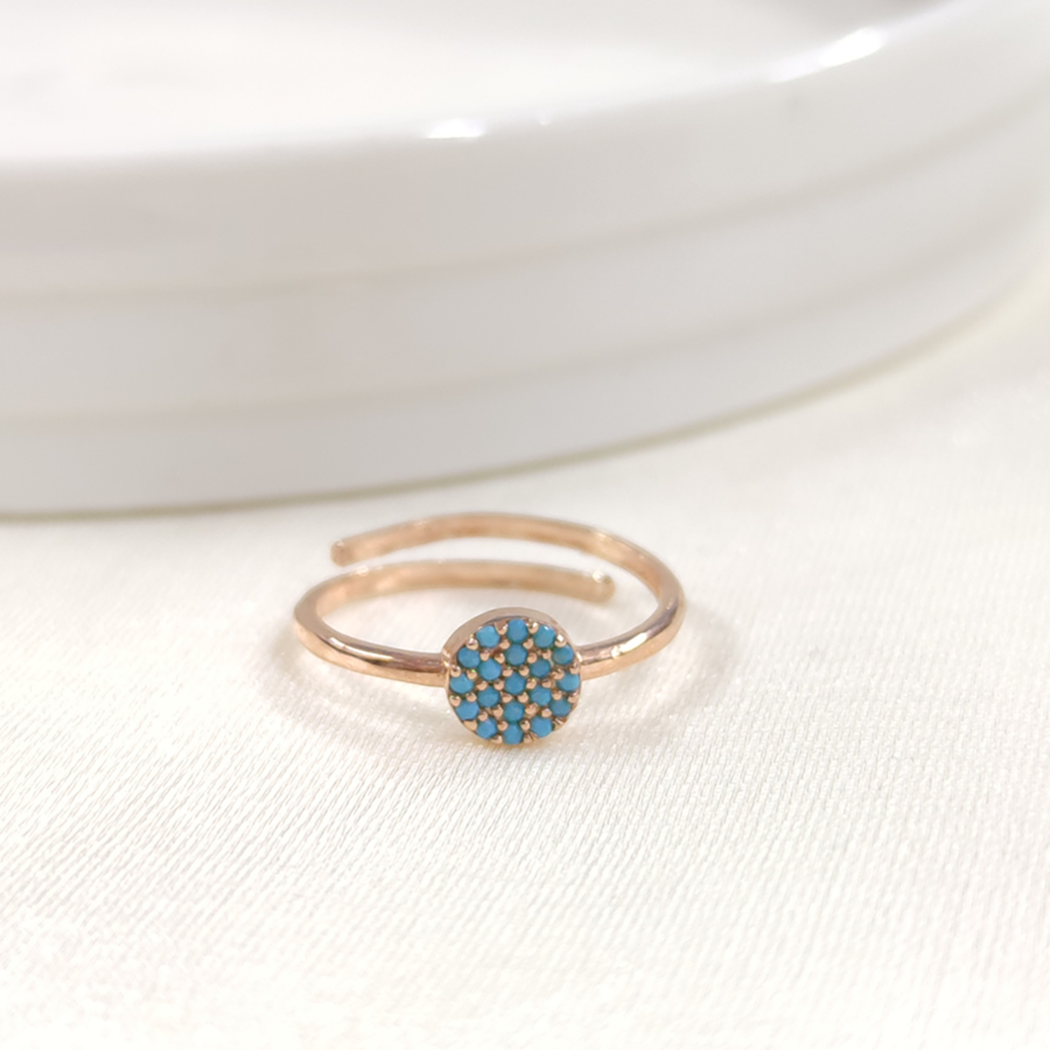MAVİ TAŞLI YUVARLAK ÇITIR GÜMÜŞ YÜZÜK - ROSE BAKIR