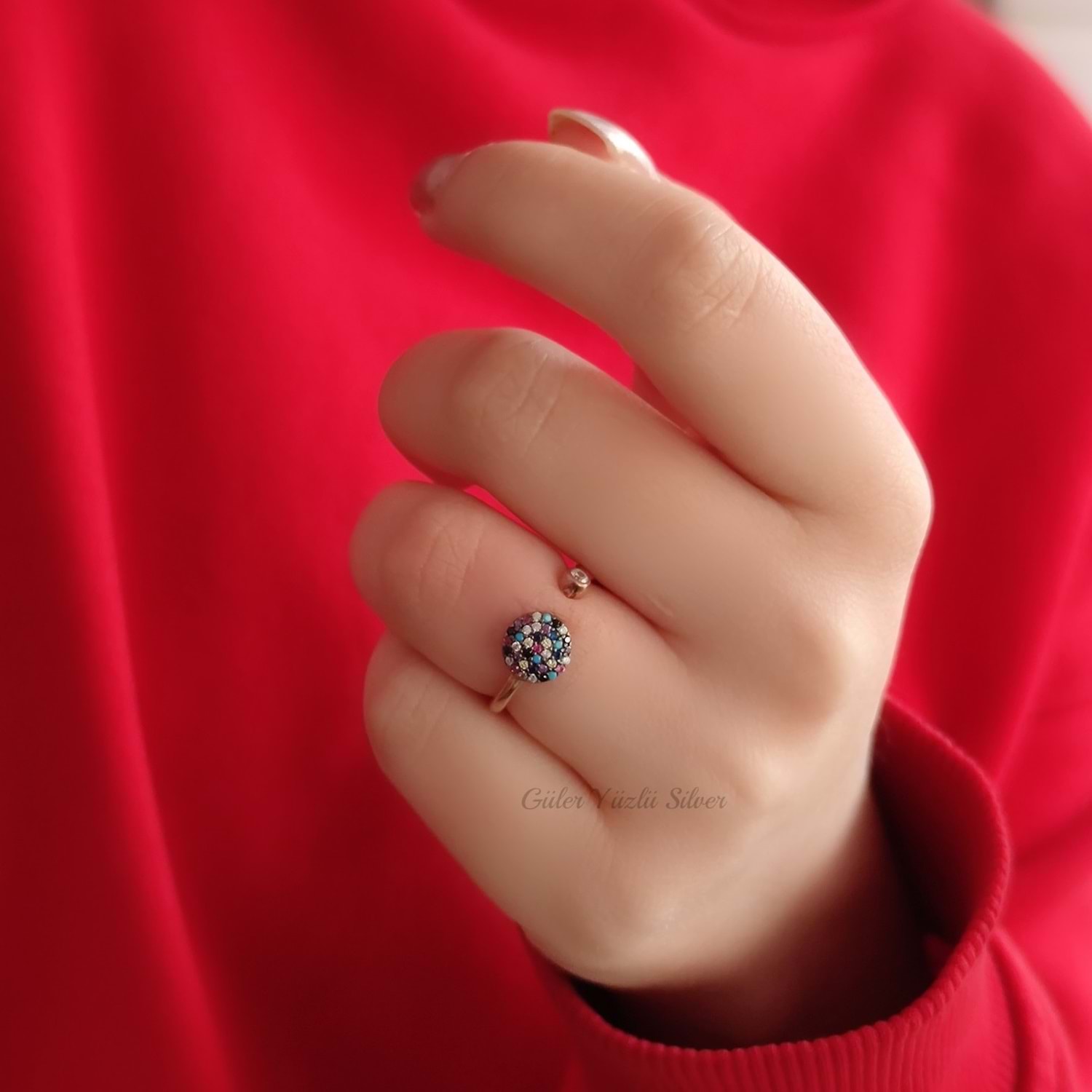 MİX TAŞLI YUVARLAK AYARLANABİLİR GÜMÜŞ YÜZÜK - ROSE ALTIN KAPLAMA