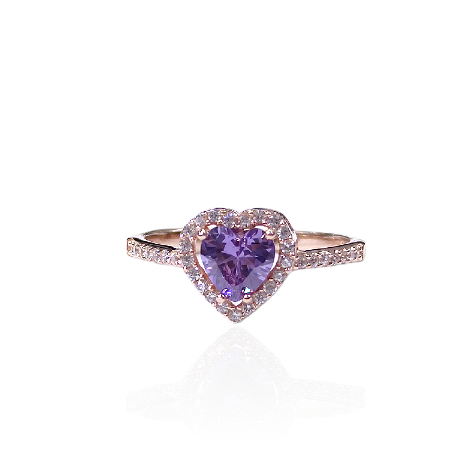 MOR TAŞLI KALP GÜMÜŞ YÜZÜK - ROSE BAKIR - 12