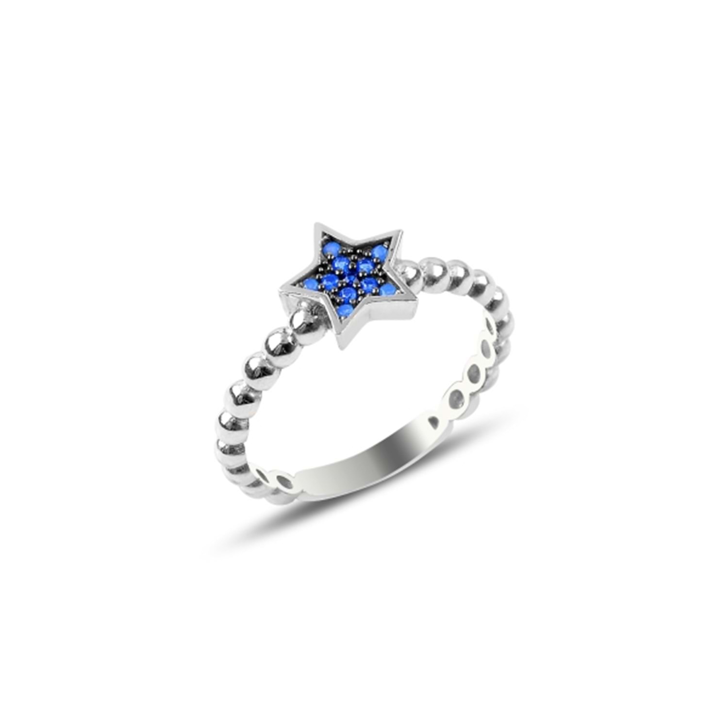 NANO MAVİ TONLAMA TAŞLI YILDIZ GÜMÜŞ YÜZÜK - 18