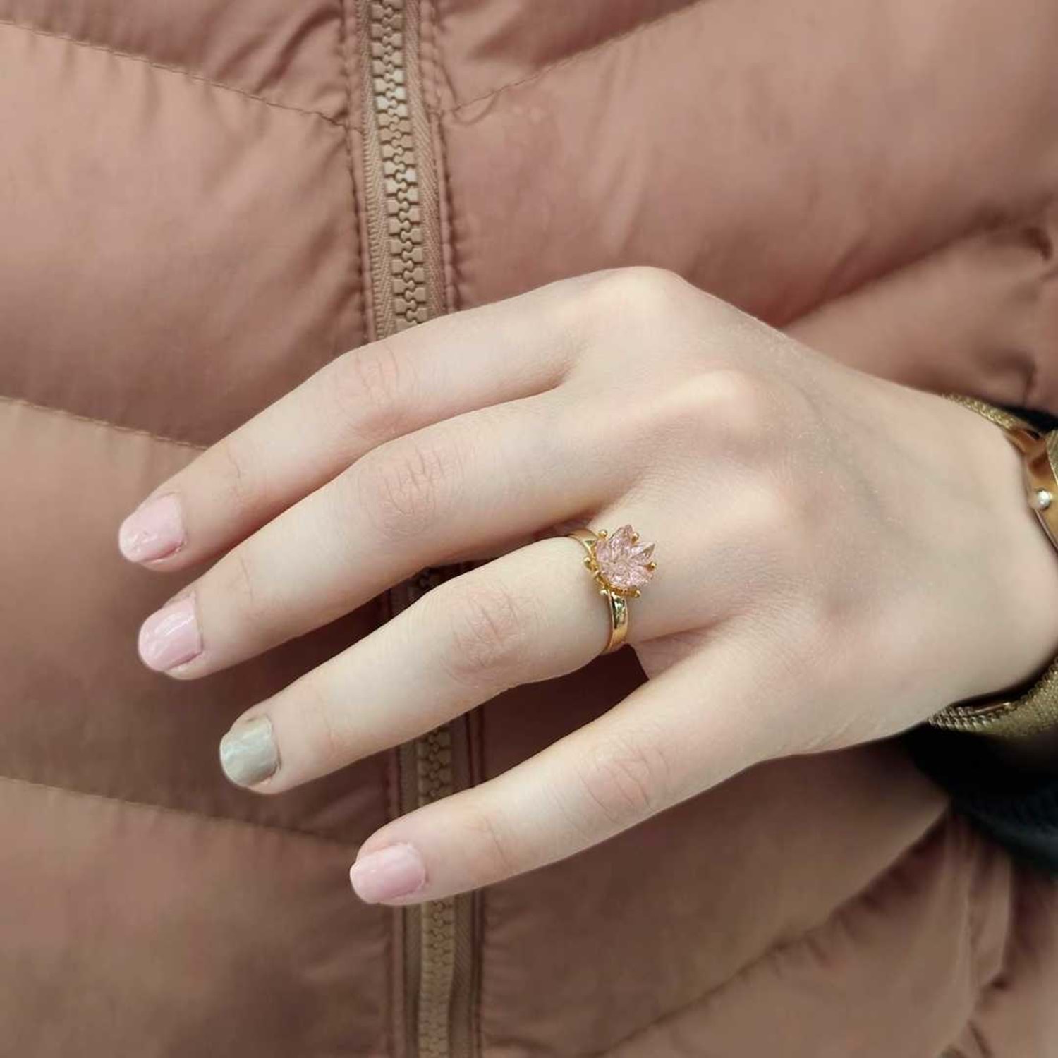PEMBE LOTUS ÇİÇEĞİ GÜMÜŞ YÜZÜK - ALTIN SARI
