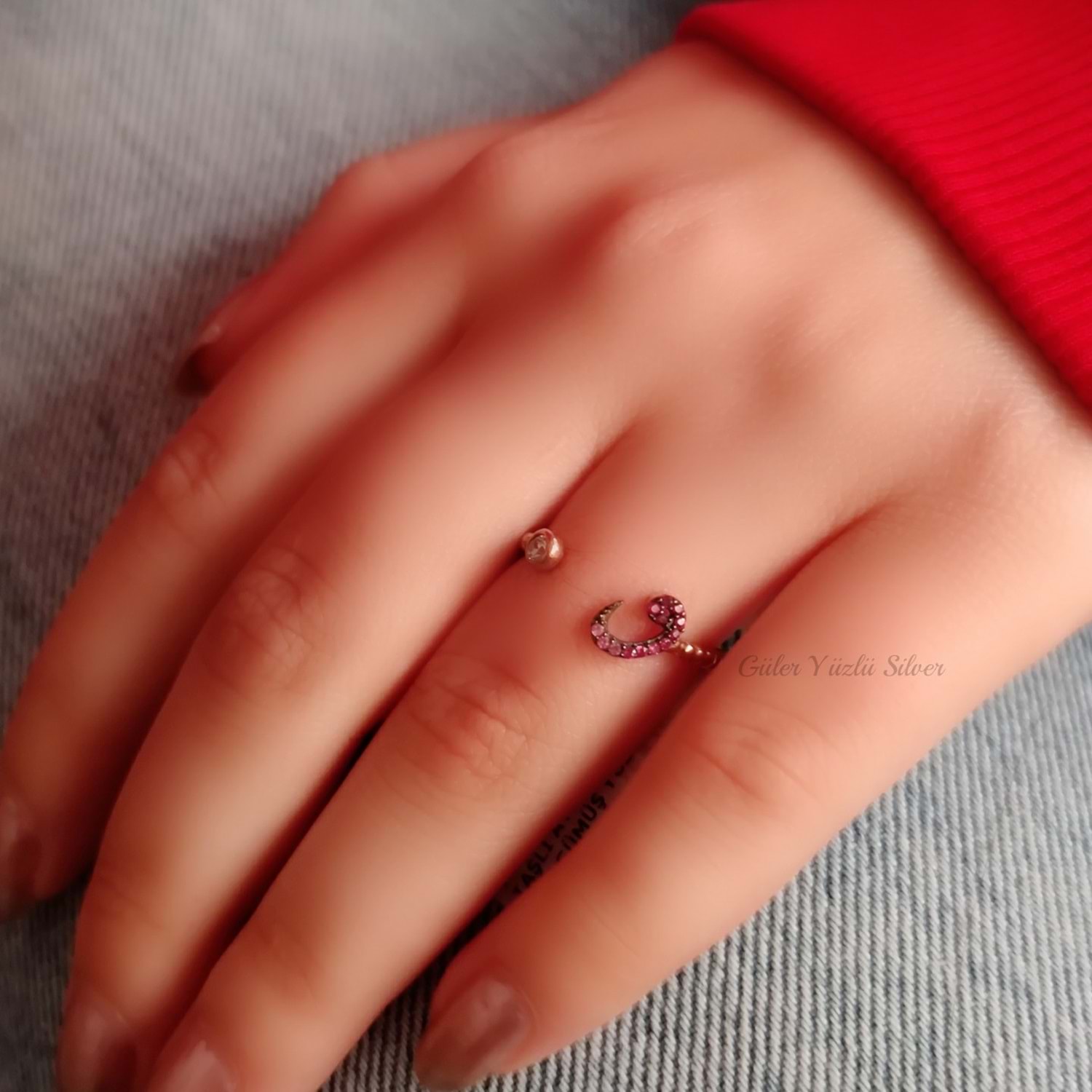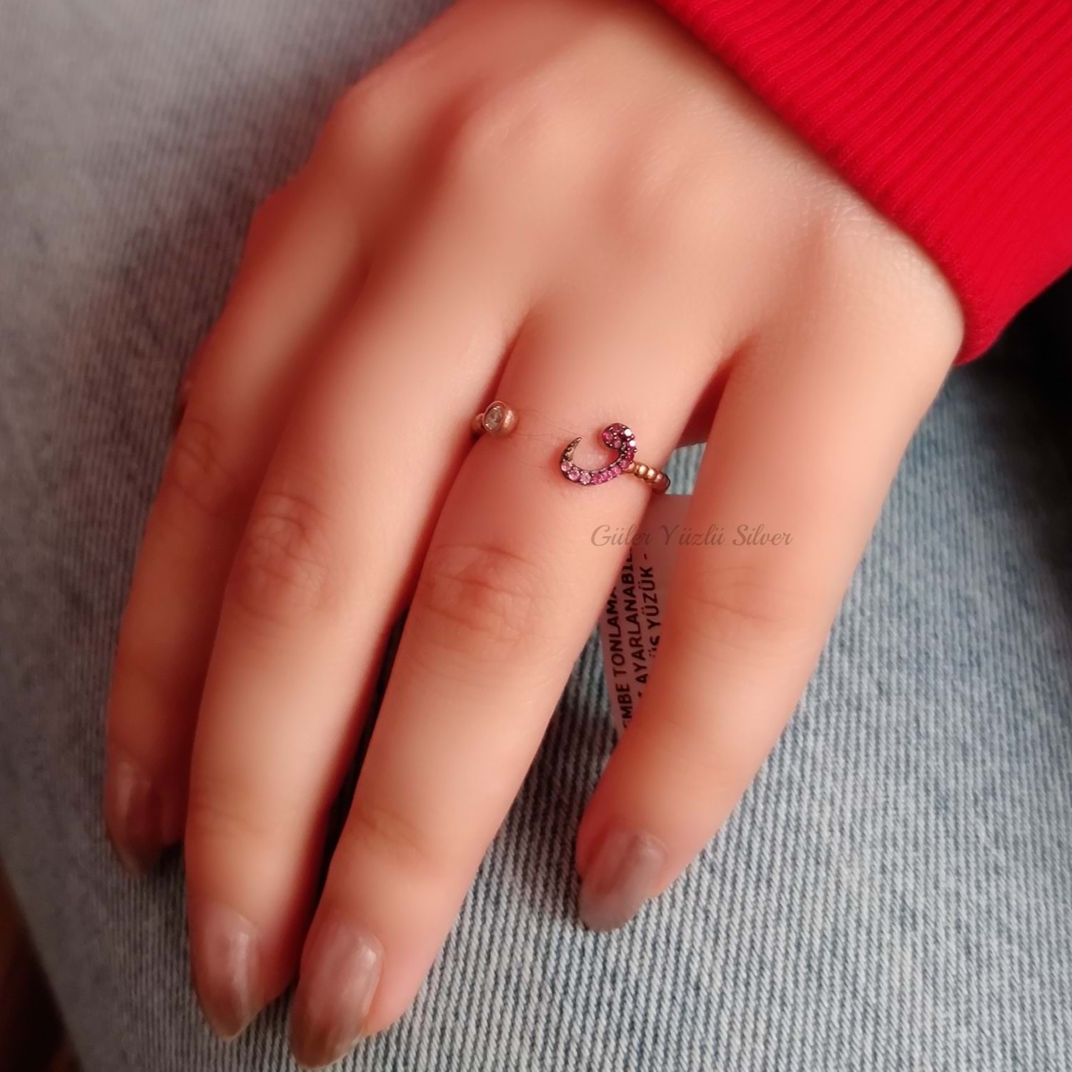 PEMBE TONLAMALI NANO TAŞLI AYARLANABİLİR VAV GÜMÜŞ YÜZÜK