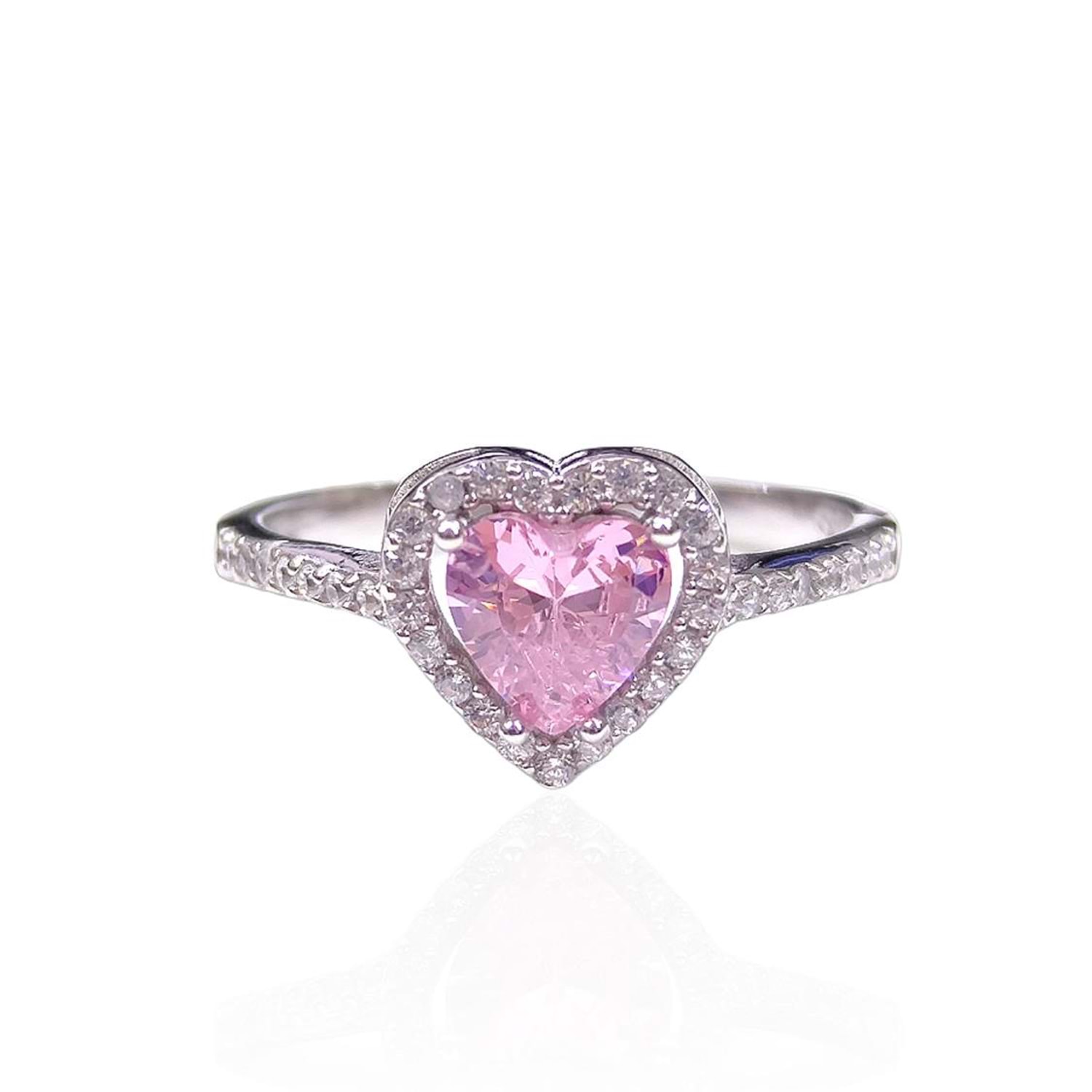 PEMBE ZİRKON TAŞLI KALP GÜMÜŞ YÜZÜK