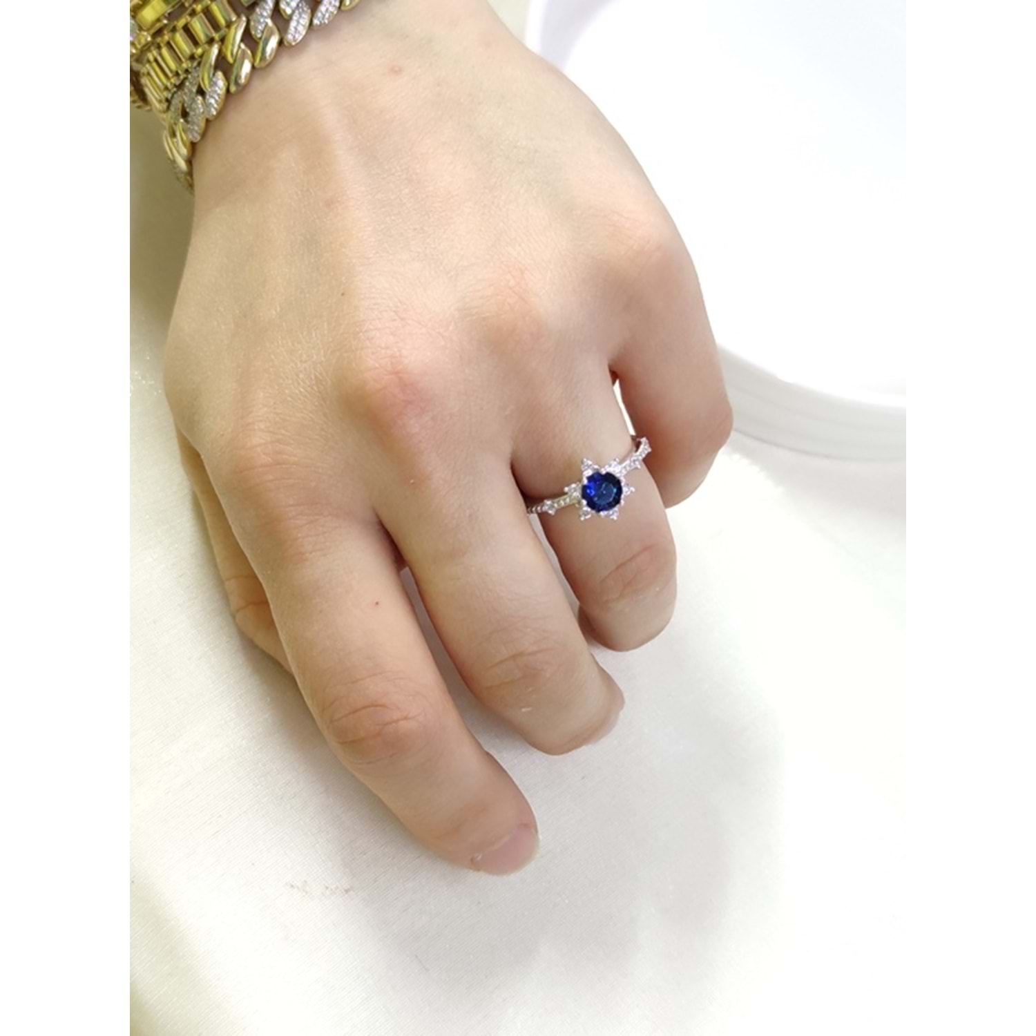 SAFİR MAVİ ZİRKON TAŞLI ÇİÇEK LOTUS TEK TAŞ GÜMÜŞ YÜZÜK - 16