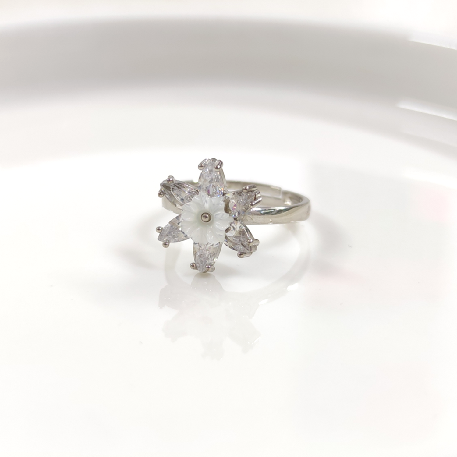 925 AYAR GÜMÜŞ ÇİÇEK BOYUT : 1,50 CM YÜZÜK ÖLÇÜSÜ AYARLANABİLİR MODEL