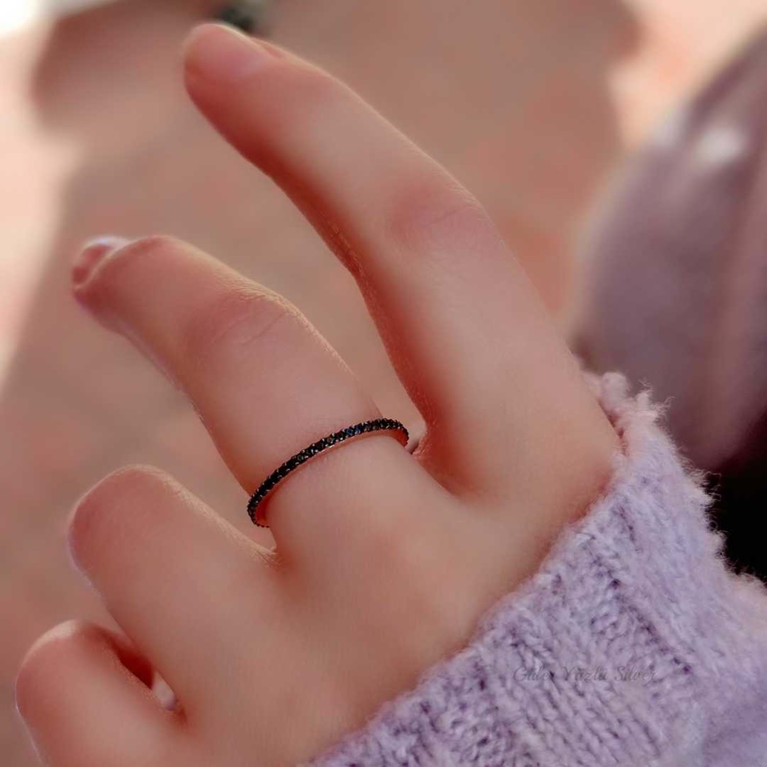 SİYAH İNCE TAMTUR GÜMÜŞ YÜZÜK - 10