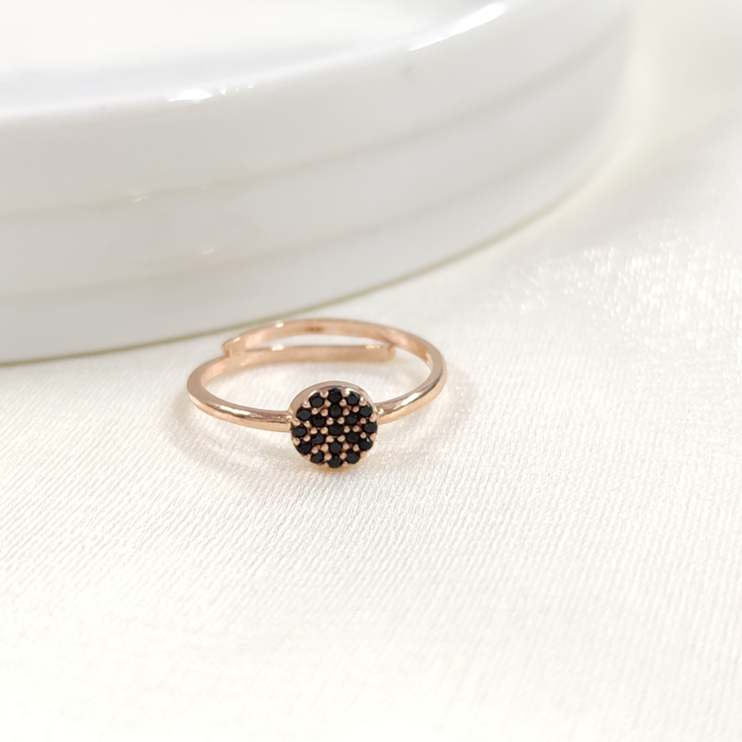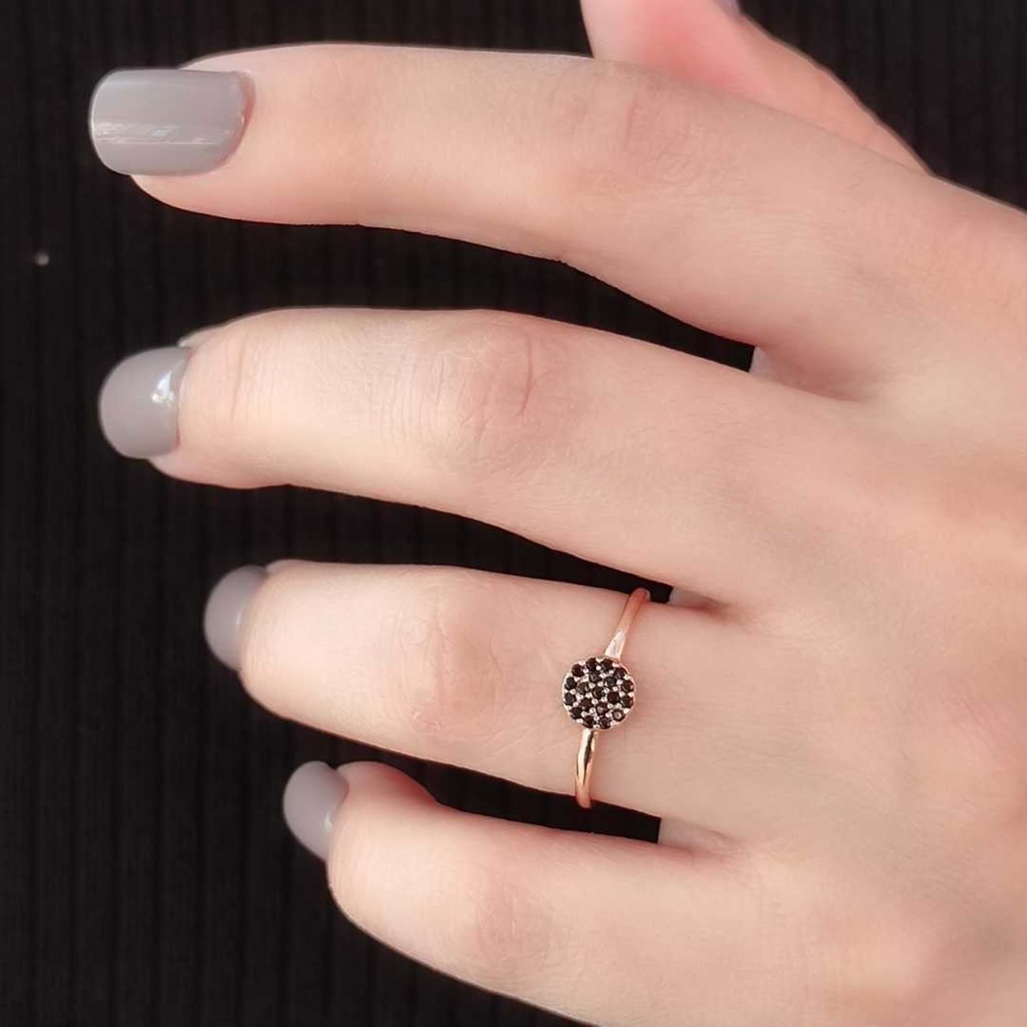 SİYAH TAŞLI YUVARLAK ÇITIR GÜMÜŞ YÜZÜK - ROSE BAKIR