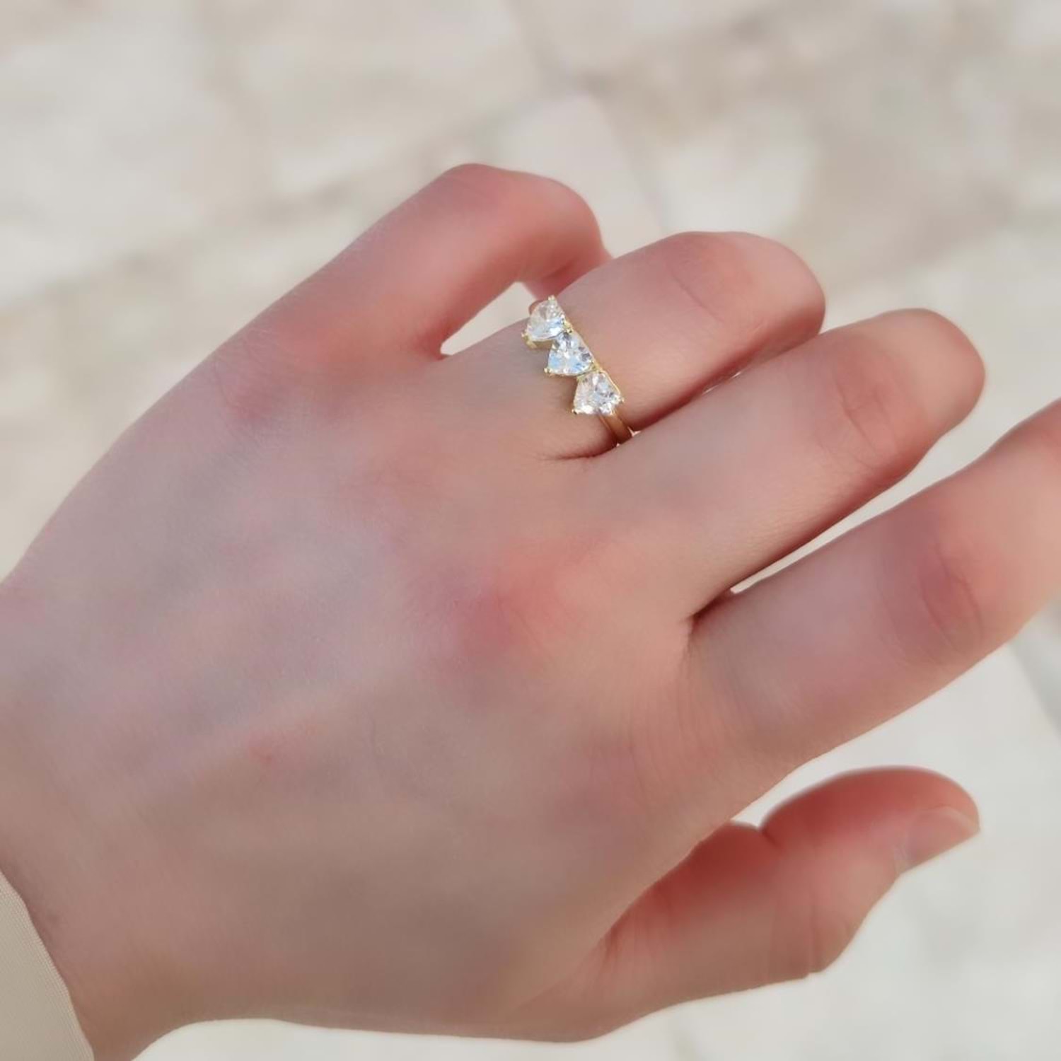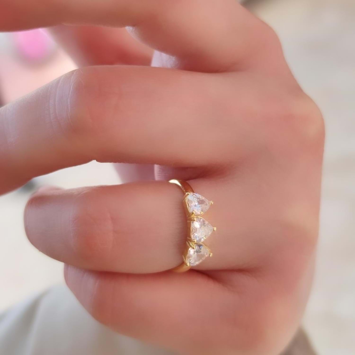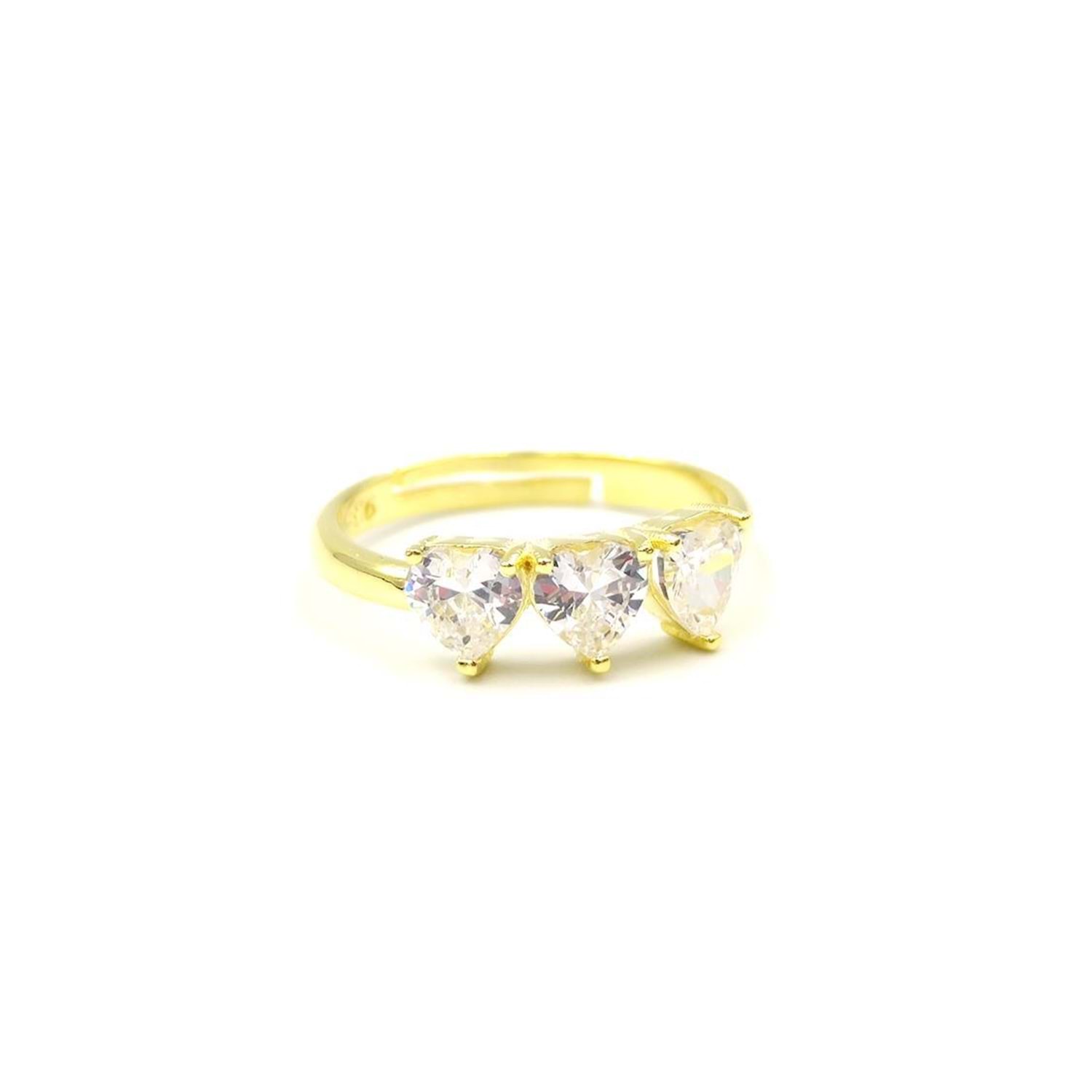ÜÇ KALP GÜMÜŞ YÜZÜK - ALTIN SARI
