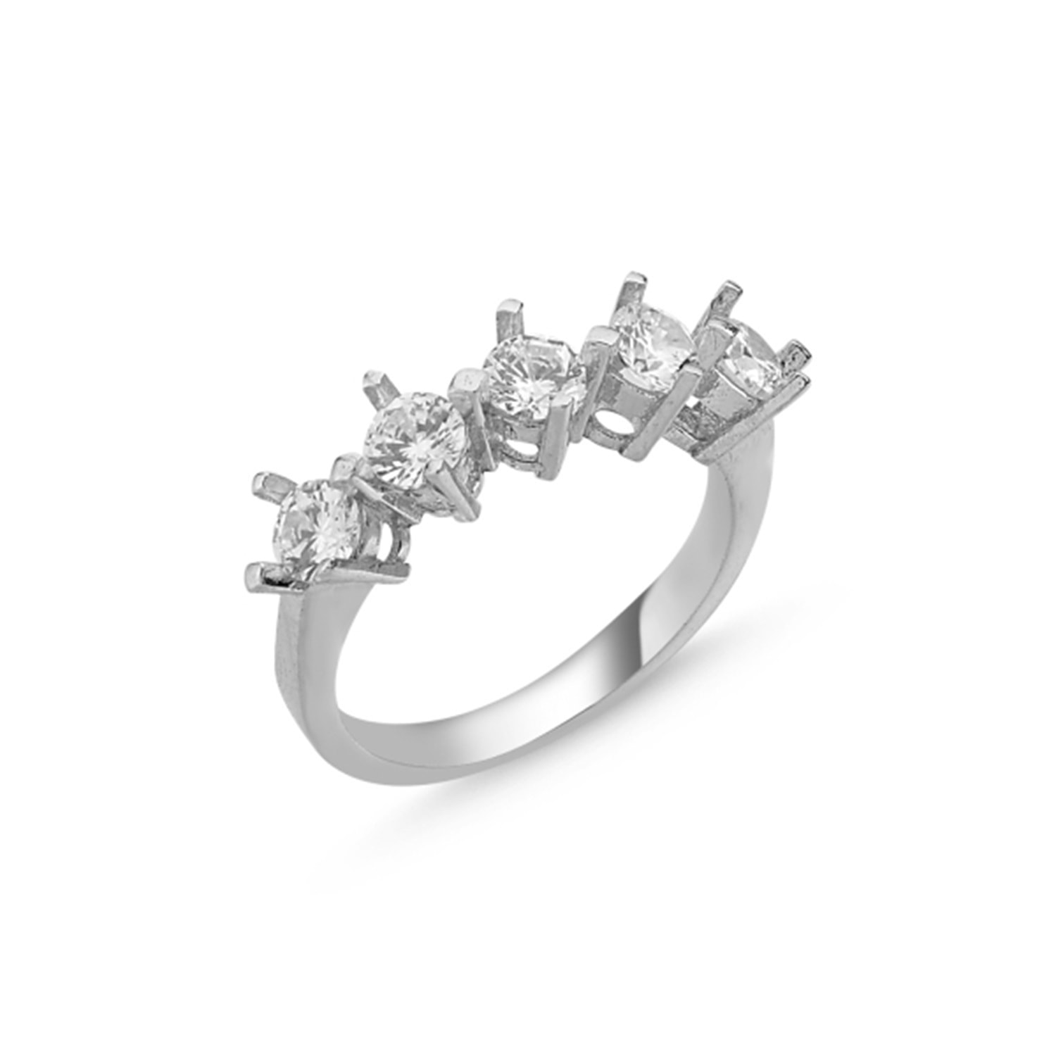 ZİRKON TAŞLI BEŞ TAŞ GÜMÜŞ YÜZÜK G4660
