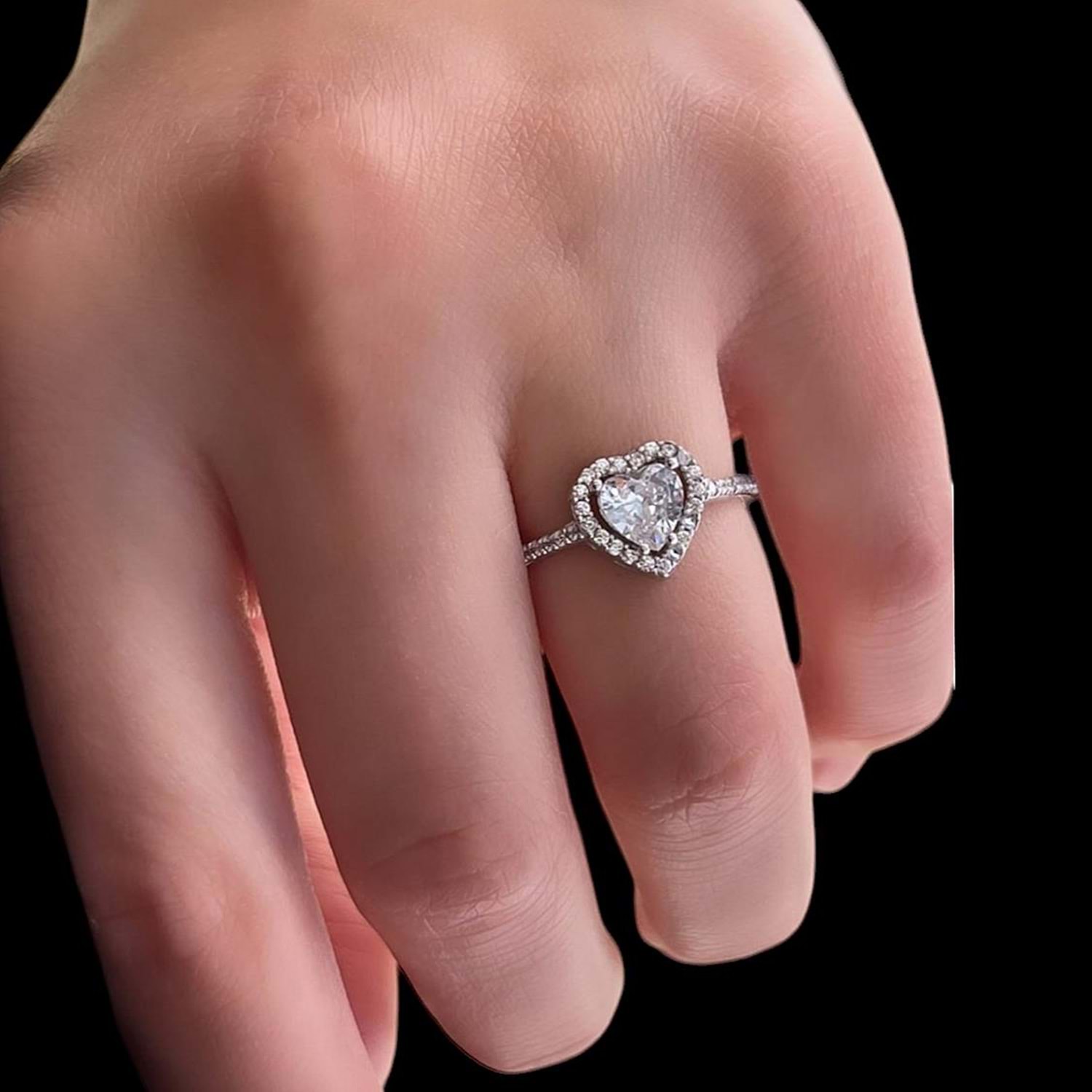 ZİRKON TAŞLI KALP GÜMÜŞ YÜZÜK - RODYUM BEYAZ - 12