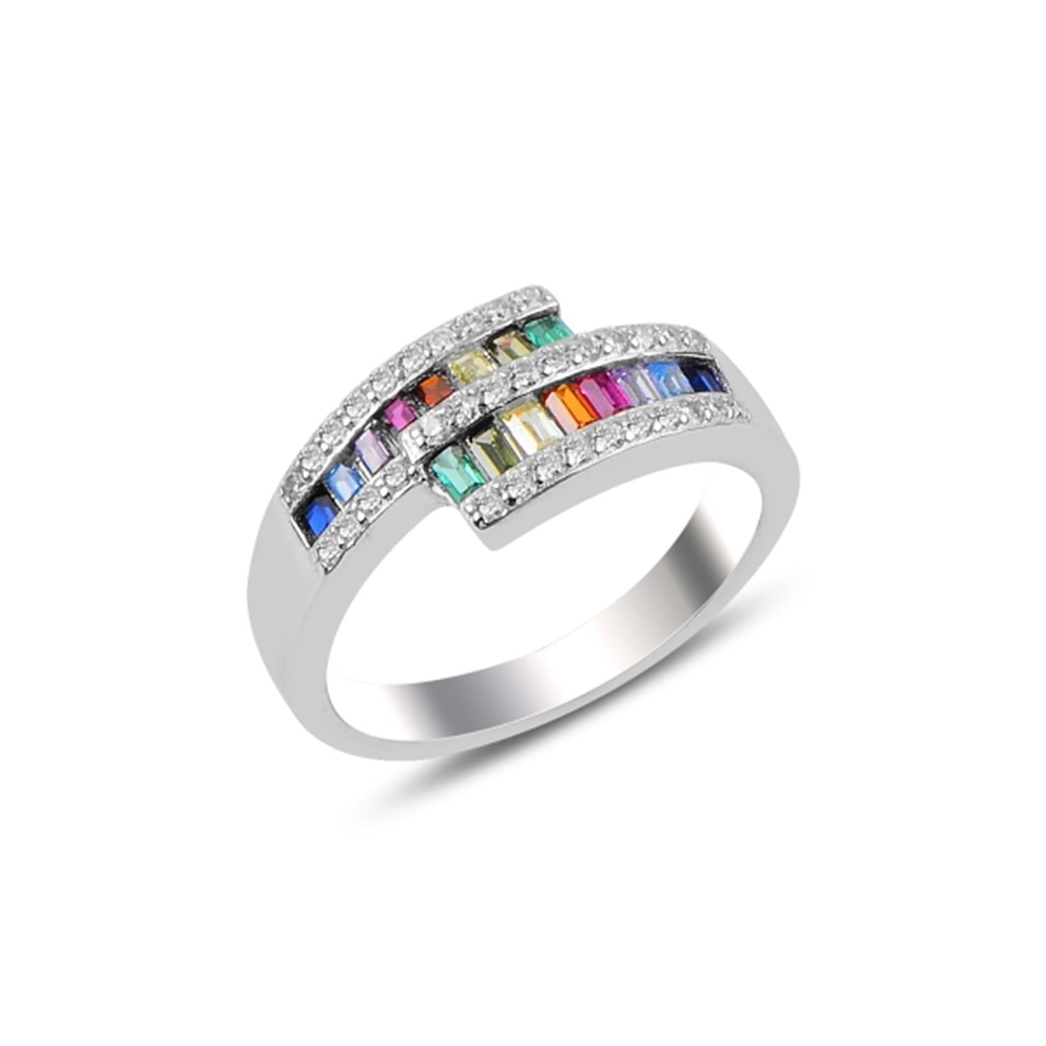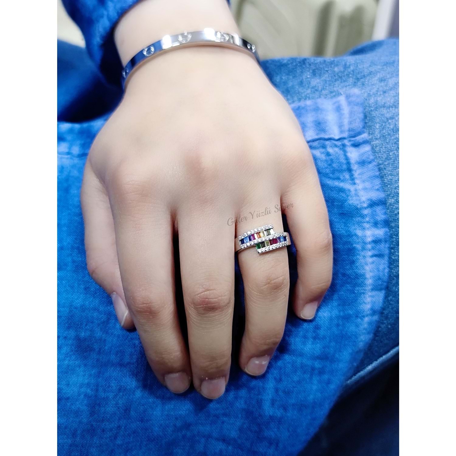 ZİRKON VE RENKLİ BAGET TAŞLI GÜMÜŞ YÜZÜK G0680 - 15