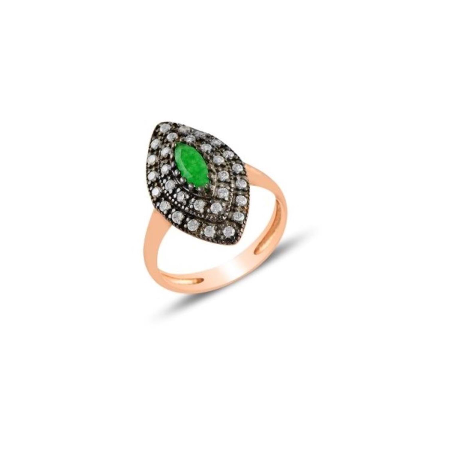 ZİRKON ZÜMRÜT TAŞLI MEKİK GÜMÜŞ YÜZÜK - 16