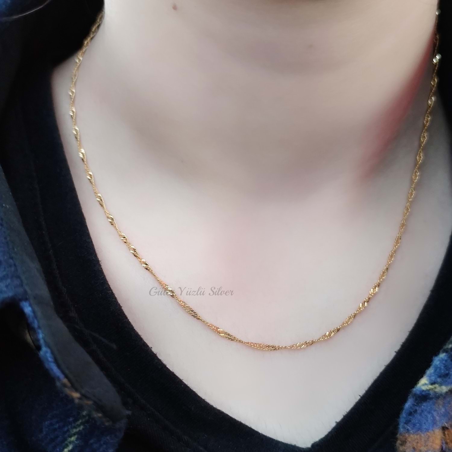 ÜRÜNLERİMİZ 925 AYAR GÜMÜŞ ÜZERİ ALTIN KAPLAMADIR. GÖRSELLERDE 45 CM SİNGAPUR ZİNCİR KULLANILMIŞTIR. KAÇ CM SATIN ALIRSANIZ O GÖNDERİLECEKTİR. SEÇENEKLERDEN ZİNCİR RENGİNİ SEÇEBİLİRSİNİZ. BURGU GÜMÜŞ ZİNCİR SATIN ALDIĞINIZ ÜRÜNLER AYNI GÜN İÇİNDE KARGOYA TESLİM EDİLMEKTEDİR.