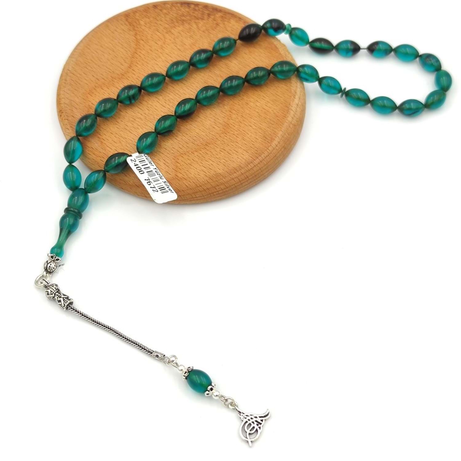 GÜMÜŞ PÜSKÜLLÜ PETROL YEŞİLİ ATEŞ KEHRİBAR TESBİH