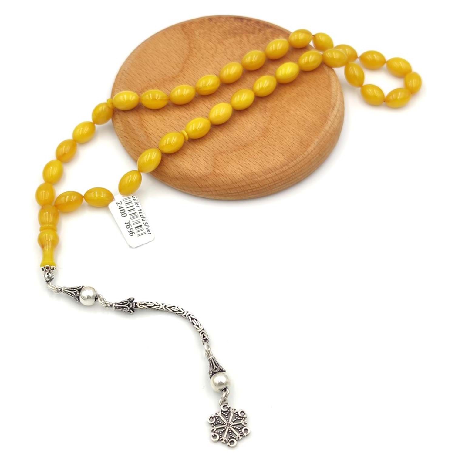 GÜMÜŞ PÜSKÜLLÜ SARI KEHRİBAR ATEŞ KEHRİBAR TESBİH