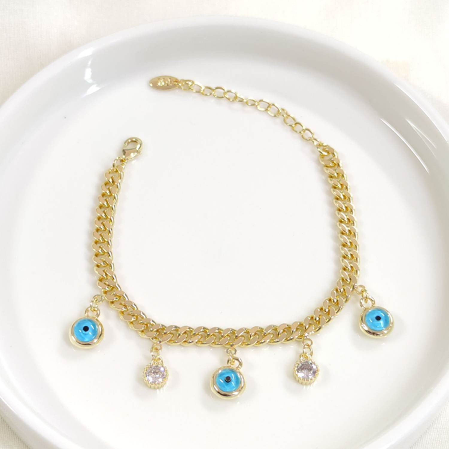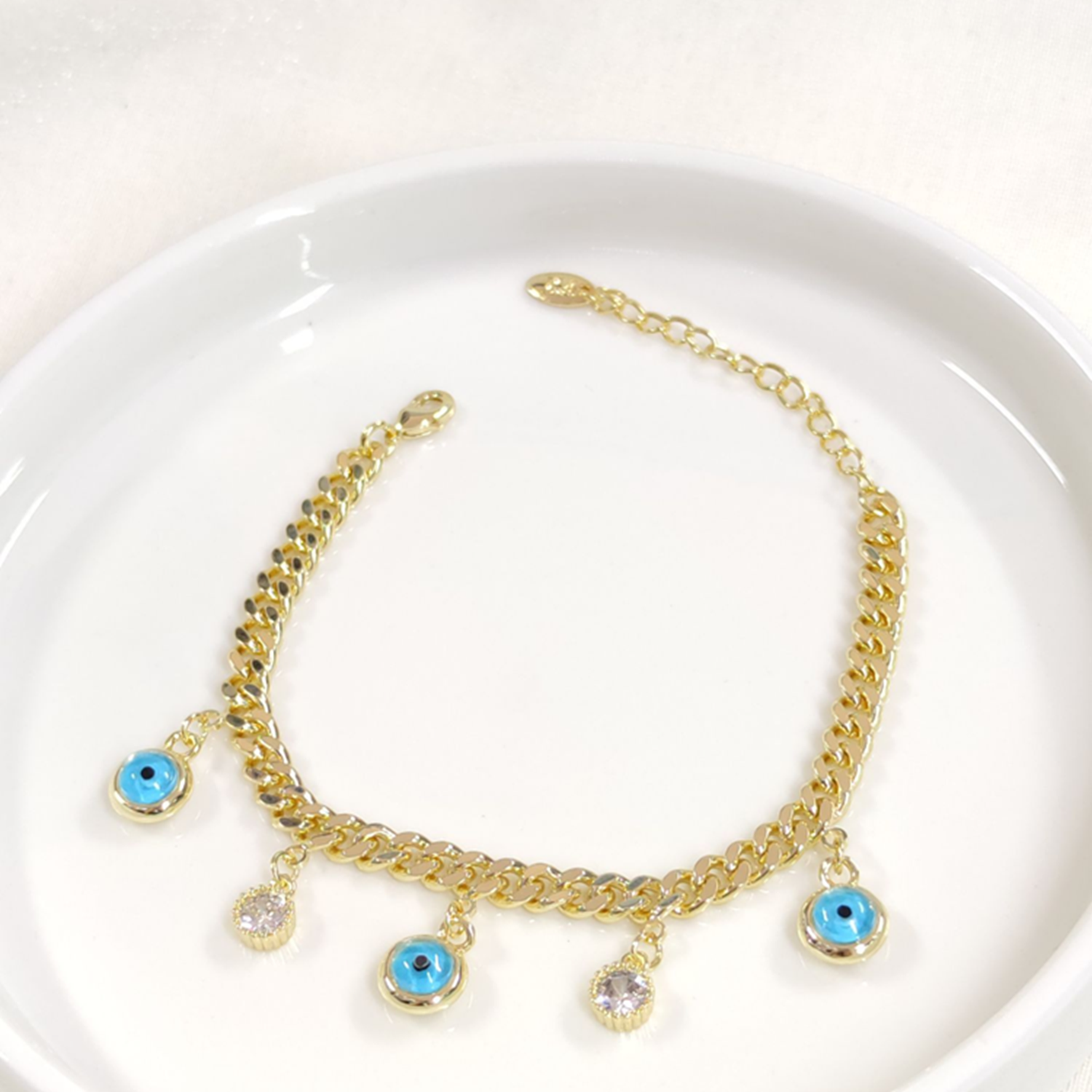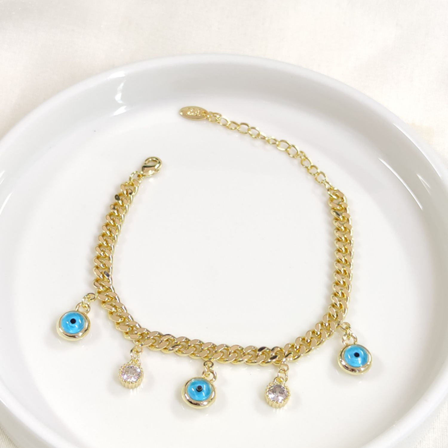 FULLYX GURMET ZİNCİRLİ SALLANTILI CAM GÖZ BİLEKLİK GOLD 16+4CM