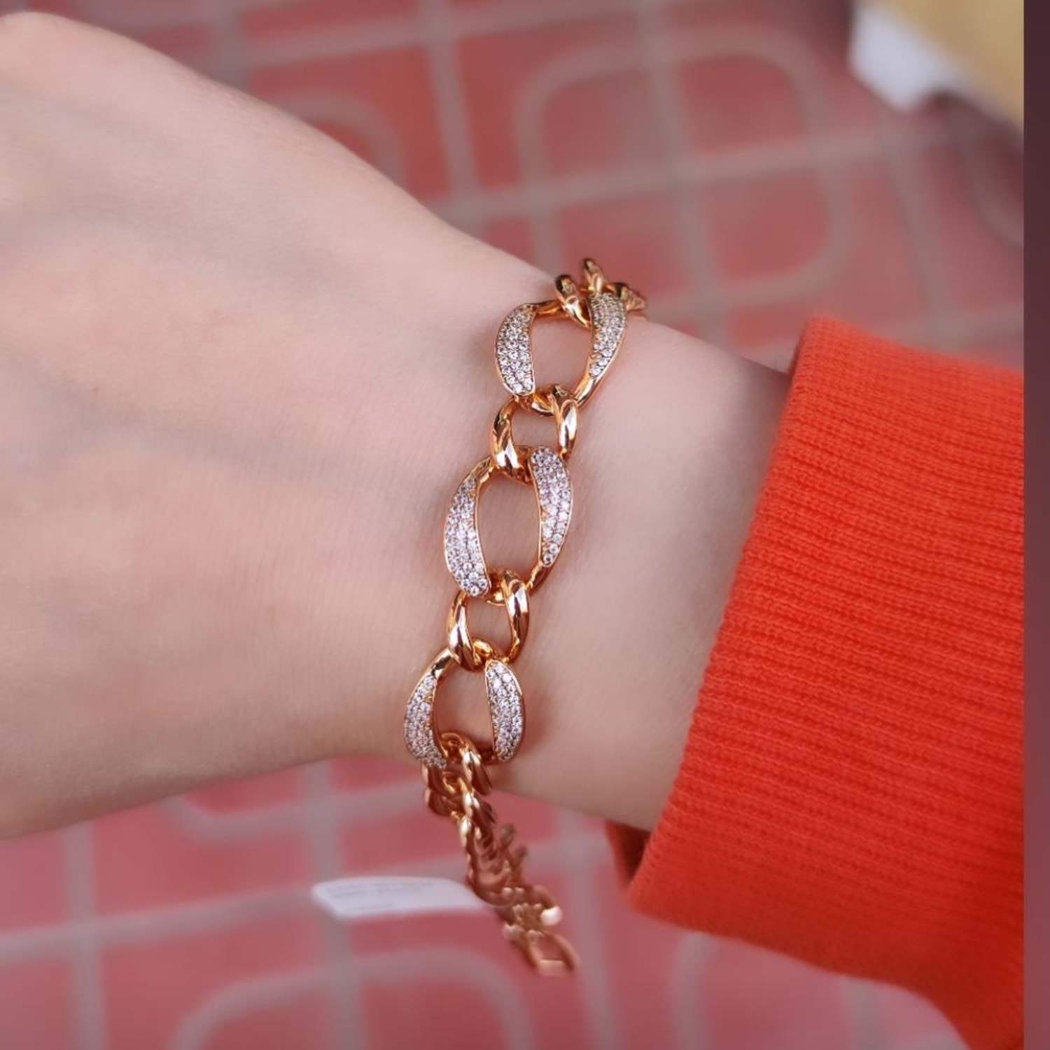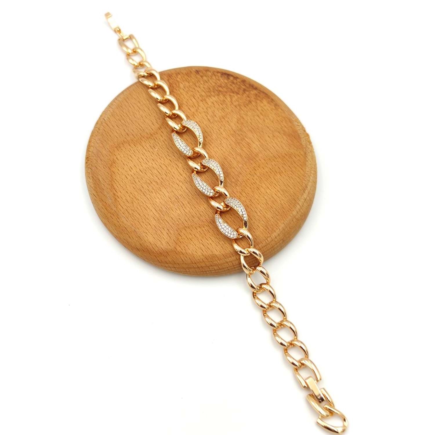 XUPING ÜRÜNLER PİRİNÇ ÜZERİNE KALİTELİ KUYUMCU ALTIN KAPLAMASI YAPILMAKTADIR. ALERJİ YAPMAZ. KİMYASAL ÜRÜNLERLE TEMAS EDİLMEDİĞİ SÜRECE UZUN YILLAR KULLANILABİLİR UZUNLUK : 18 - 20 CM AYARLANABİLİR ÖLÇÜ BİLEKLİK ENİ : 1,30 CM EN KALIN YERİ ROSE ALTIN KAPLAMA