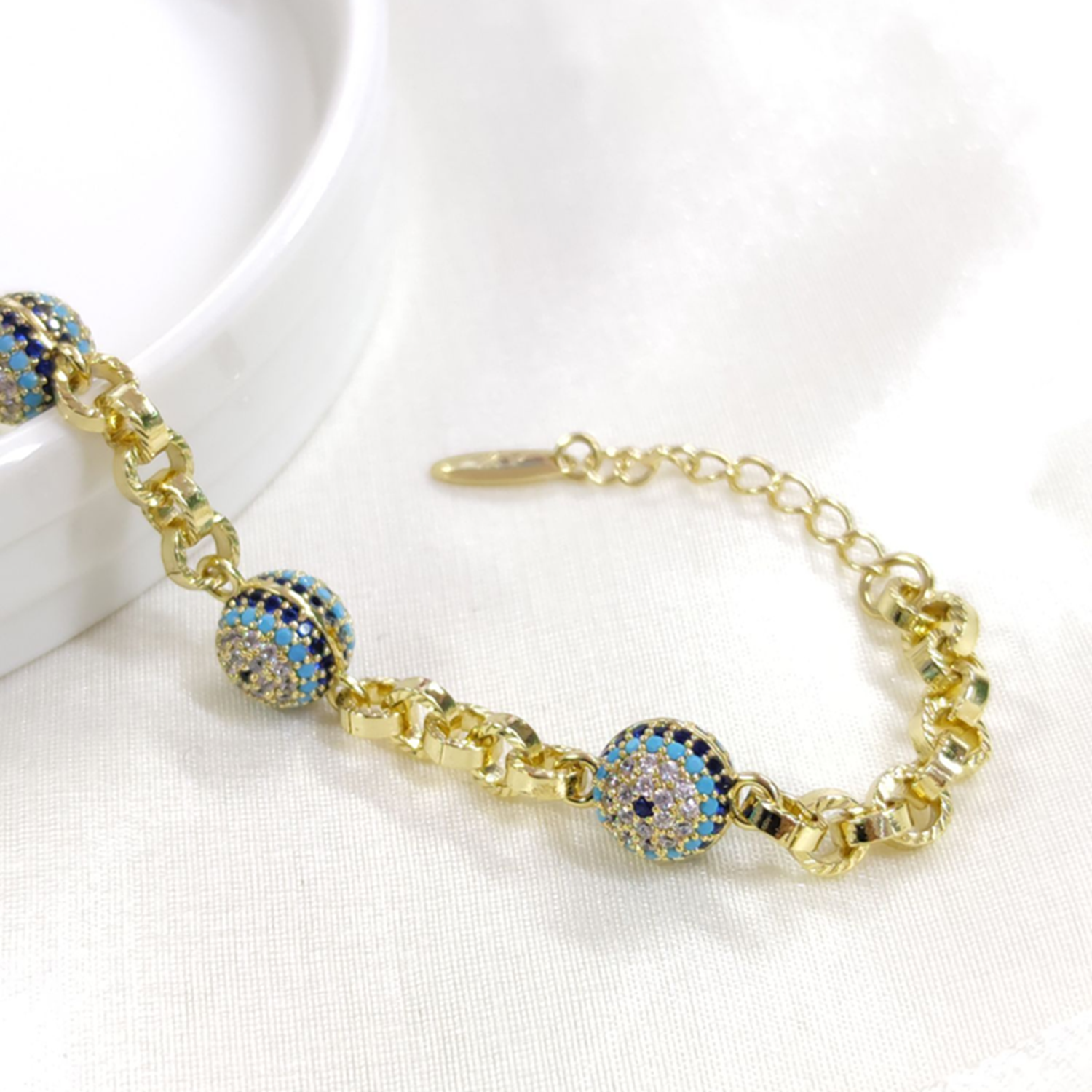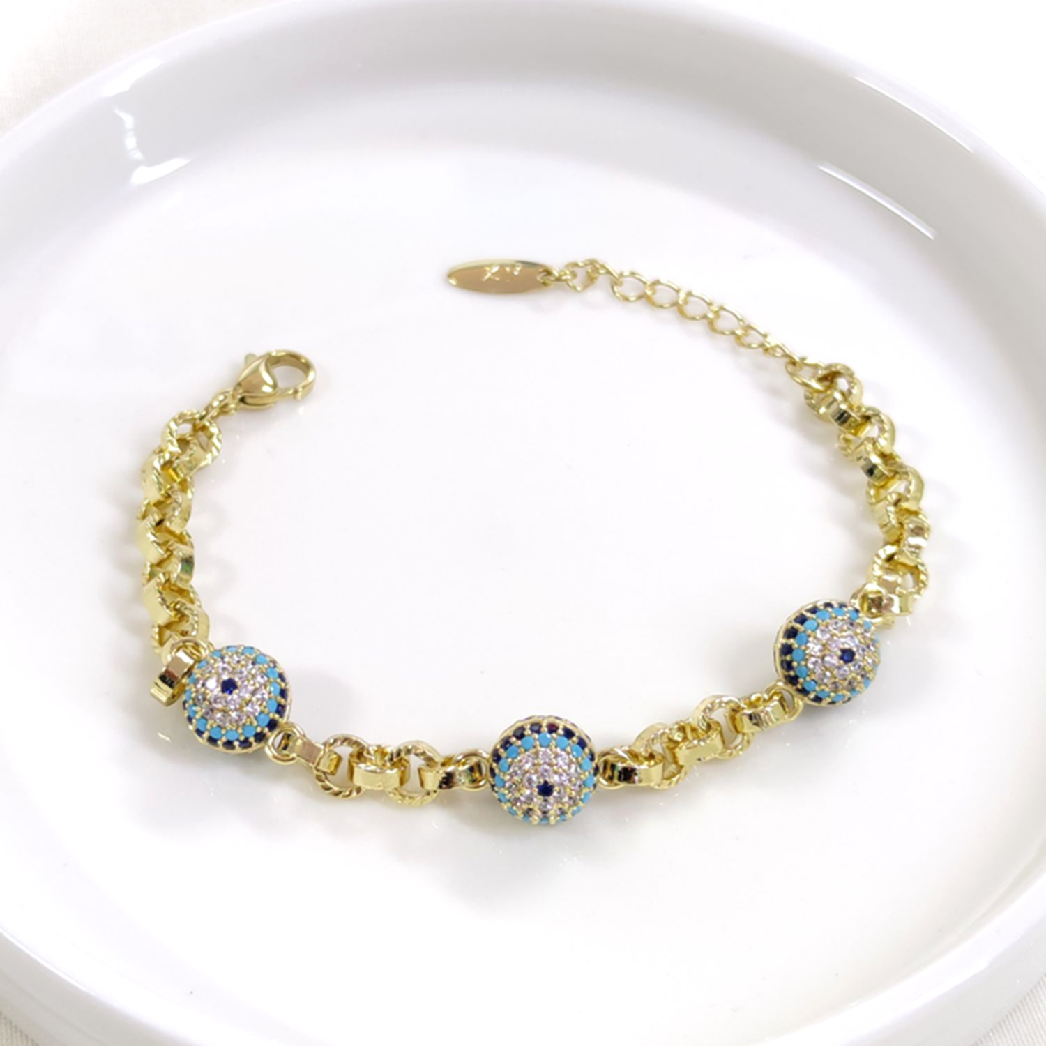 XUPING ÜÇLÜ SOSYETE GÖZÜ NAZAR BONCUKLU BİLEKLİK 17+3 CM - ALTIN SARI