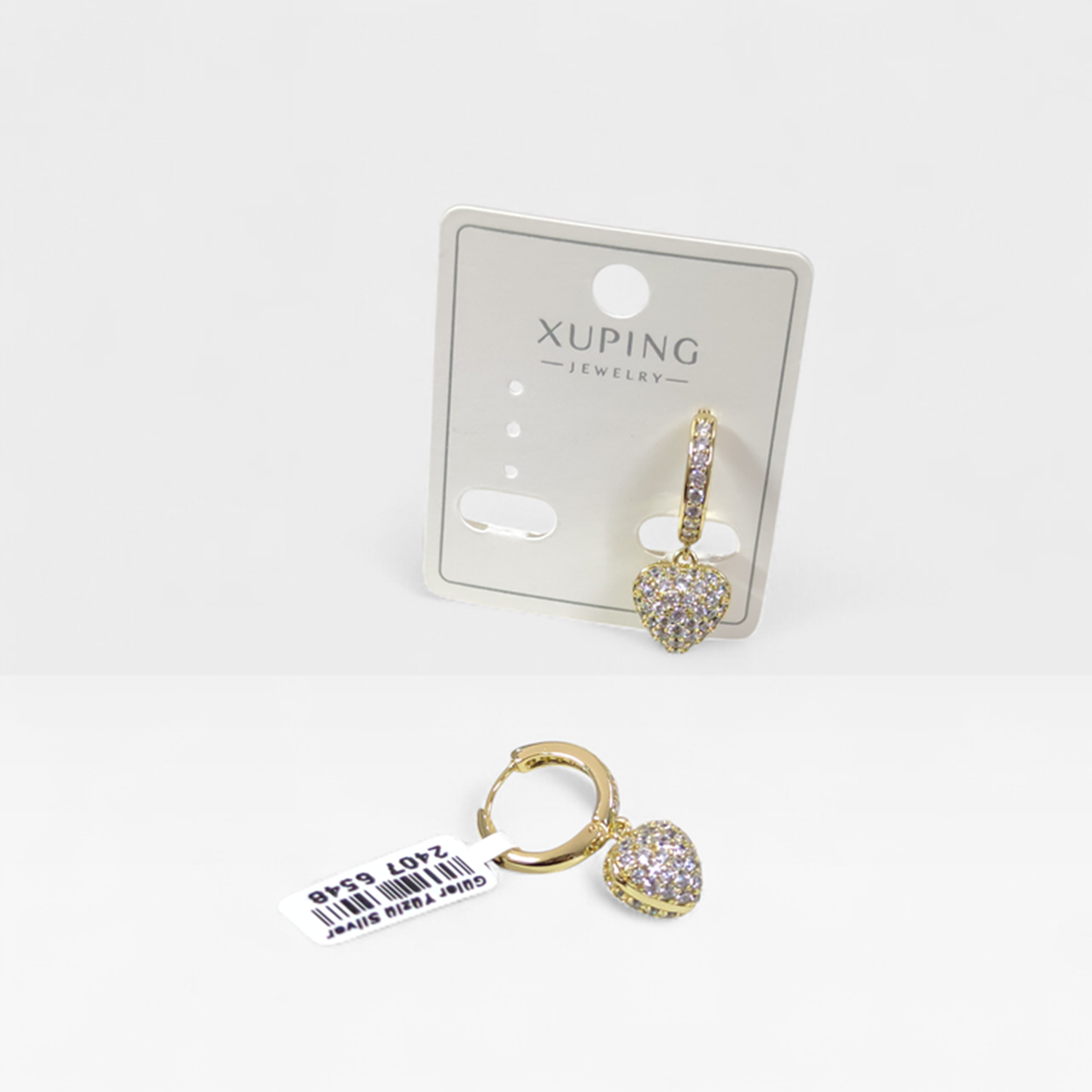 XUPING 10 MM TAŞLI BOMBELİ KALP 15 MM HALKA KÜPE GOLD
