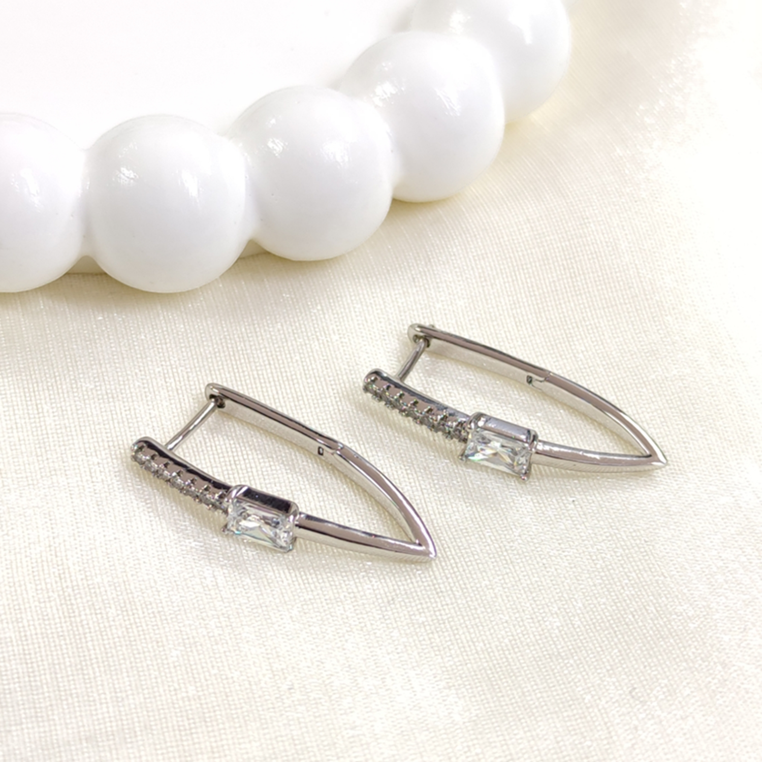 XUPING 25x9 MM BAGET DETAYLI ÜÇGEN HALKA KÜPE BEYAZ