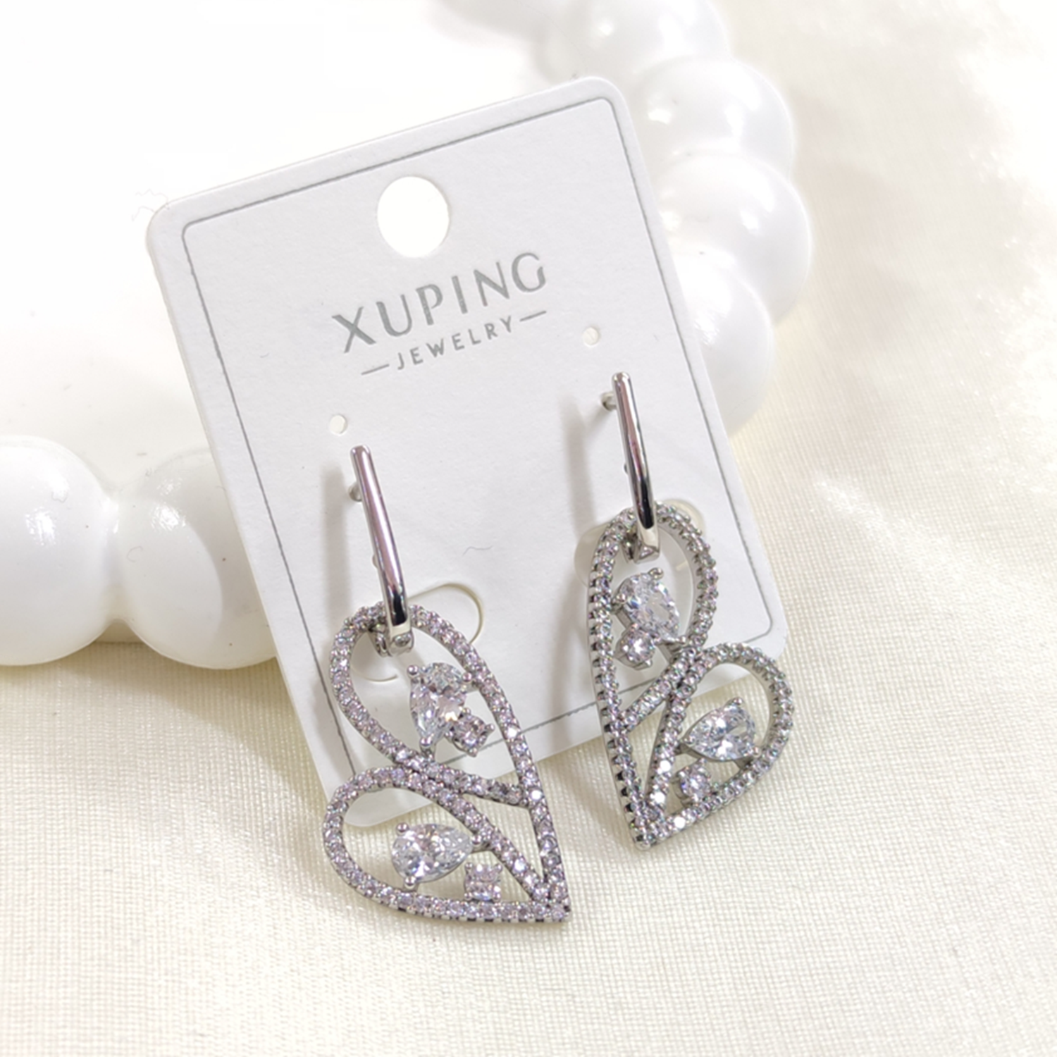 XUPING 3 CM BÜYÜK TAŞLI KALP 9 MM HALKA KÜPE BEYAZ