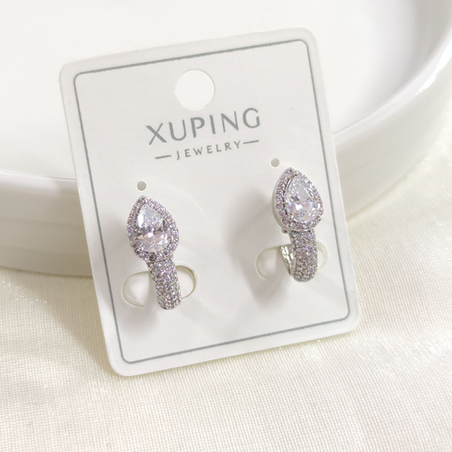 XUPING 8X10MM TAŞLI DAMLA J HALKA KÜPE BEYAZ