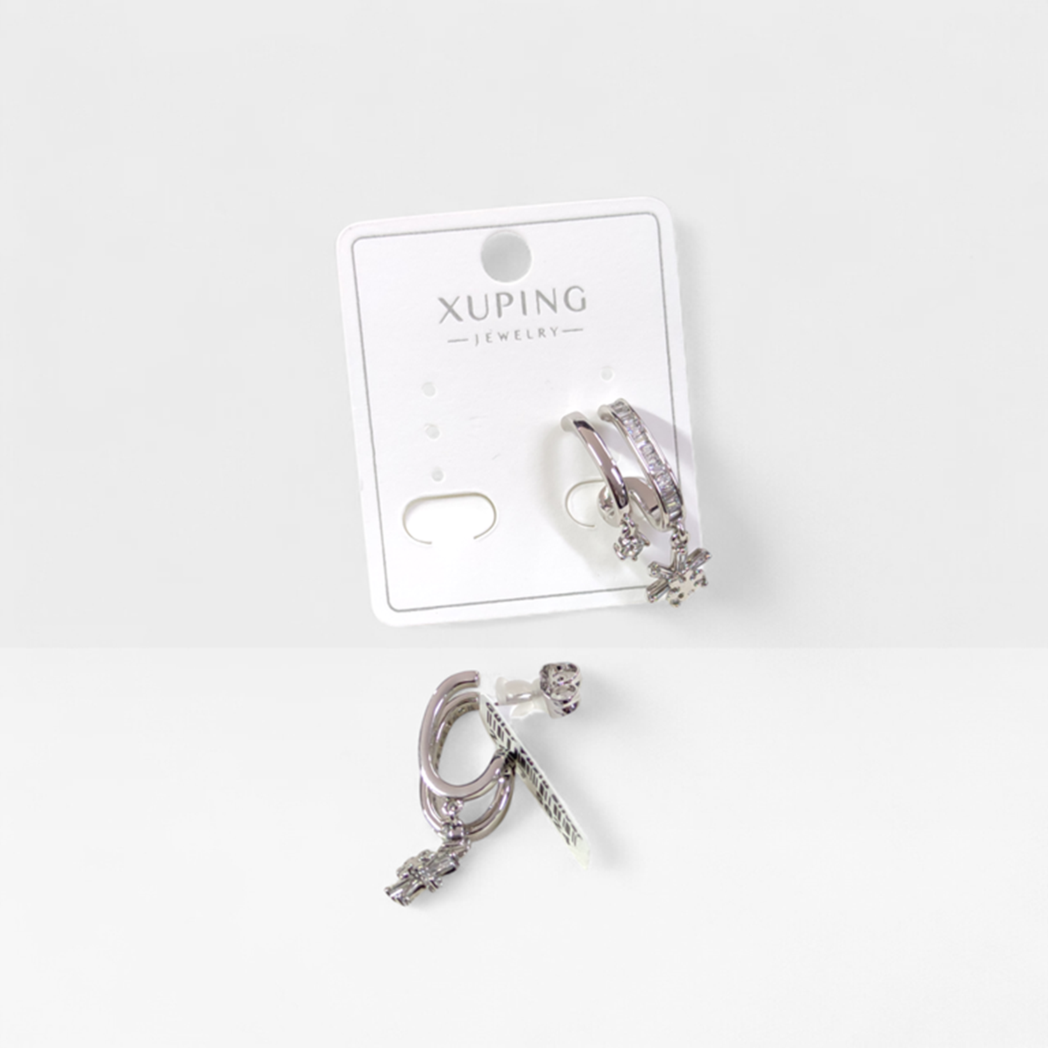 XUPING İKİ GÖRÜNÜMLÜ ÇİVİ HALKA KÜPE BEYAZ