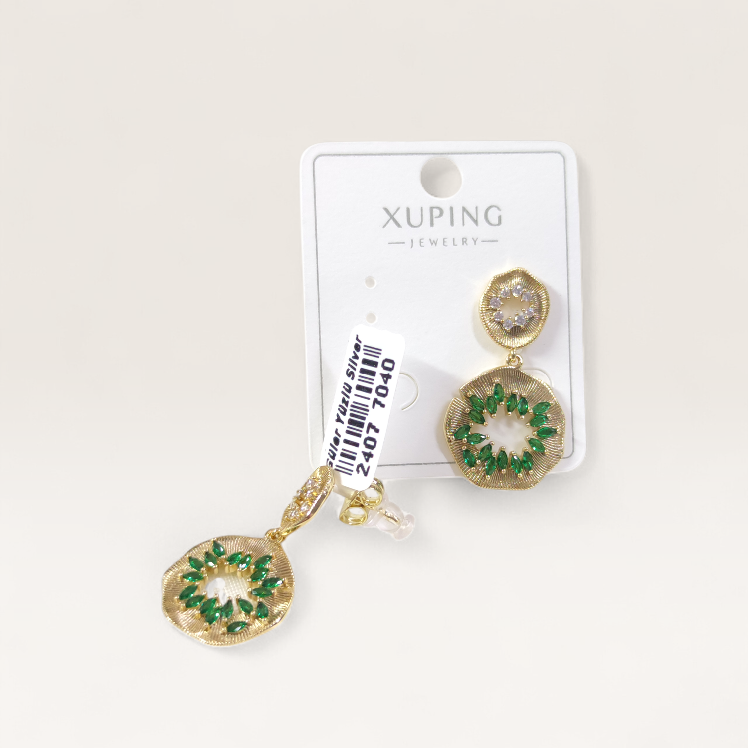 XUPING SALLANTILI YEŞİL TAŞLI ÇİVİ KÜPE GOLD