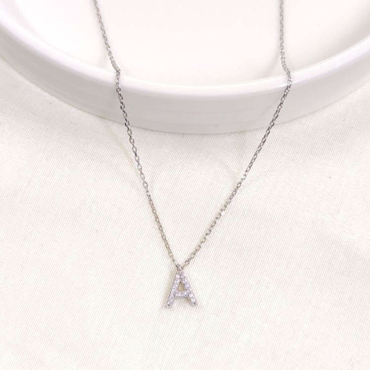 1 CM TAŞLI A HARF GÜMÜŞ KOLYE 40+5 CM