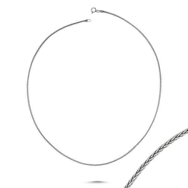 40 MİKRON OKSİTLİ SPİKE ZİNCİR GÜMÜŞ KOLYE 45 CM