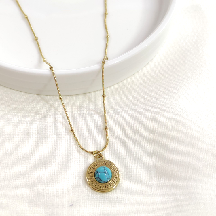 ÇELİK MAVİ TAŞLI YUVARLAK KOLYE 40+5 CM