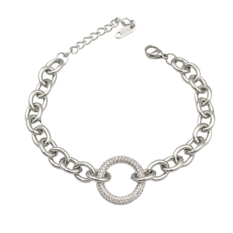 ÇELİK TAŞ DETAYLI HALKALI BİLEKLİK BEYAZ