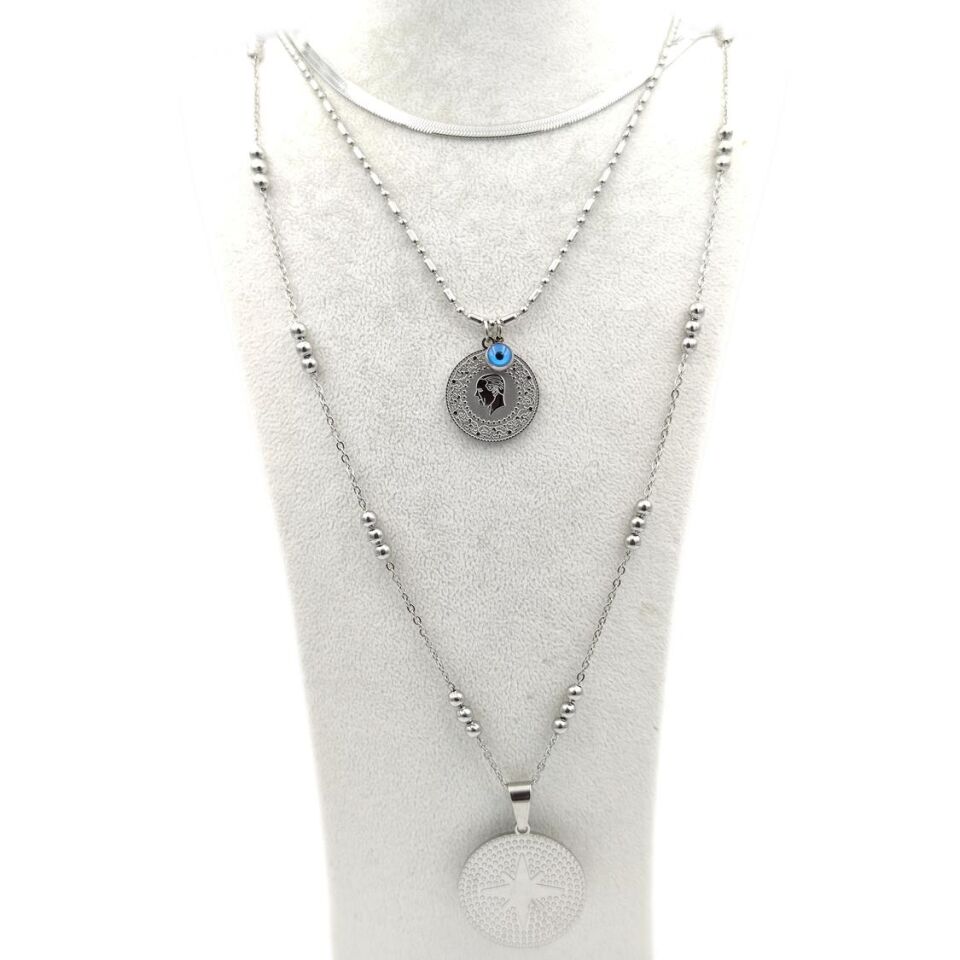 ÇELİK ÜÇLÜ KUTUP YILDIZLI KOMBİN KOLYE