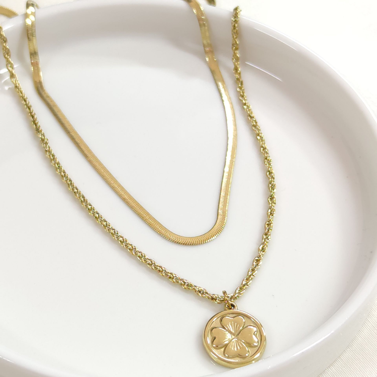 ÇELİK YONCA KOMBİN İKİLİ KOLYE