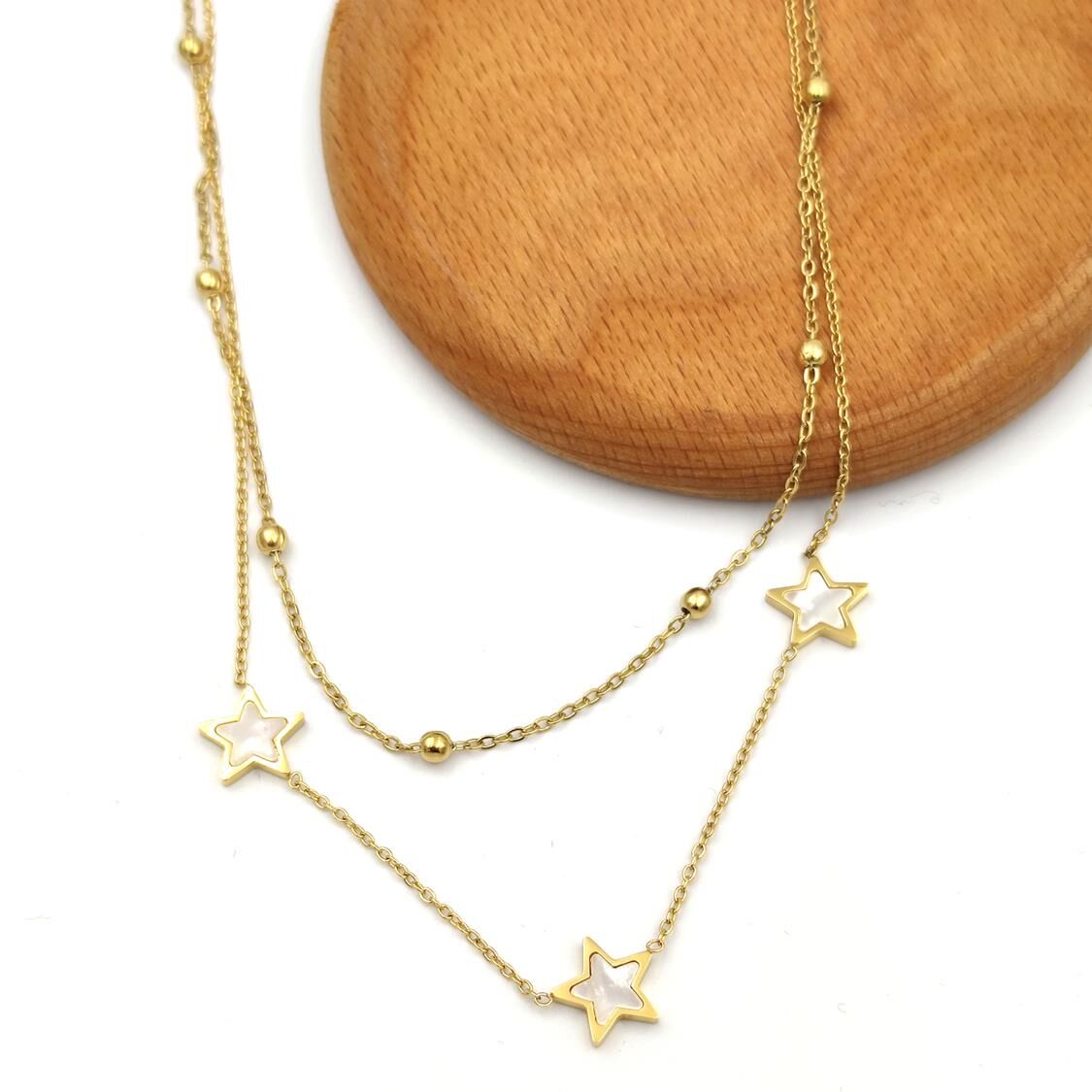 İKİ SIRA TOP ZİNCİRLİ SEDEF YILDIZ ÇELİK KOLYE
