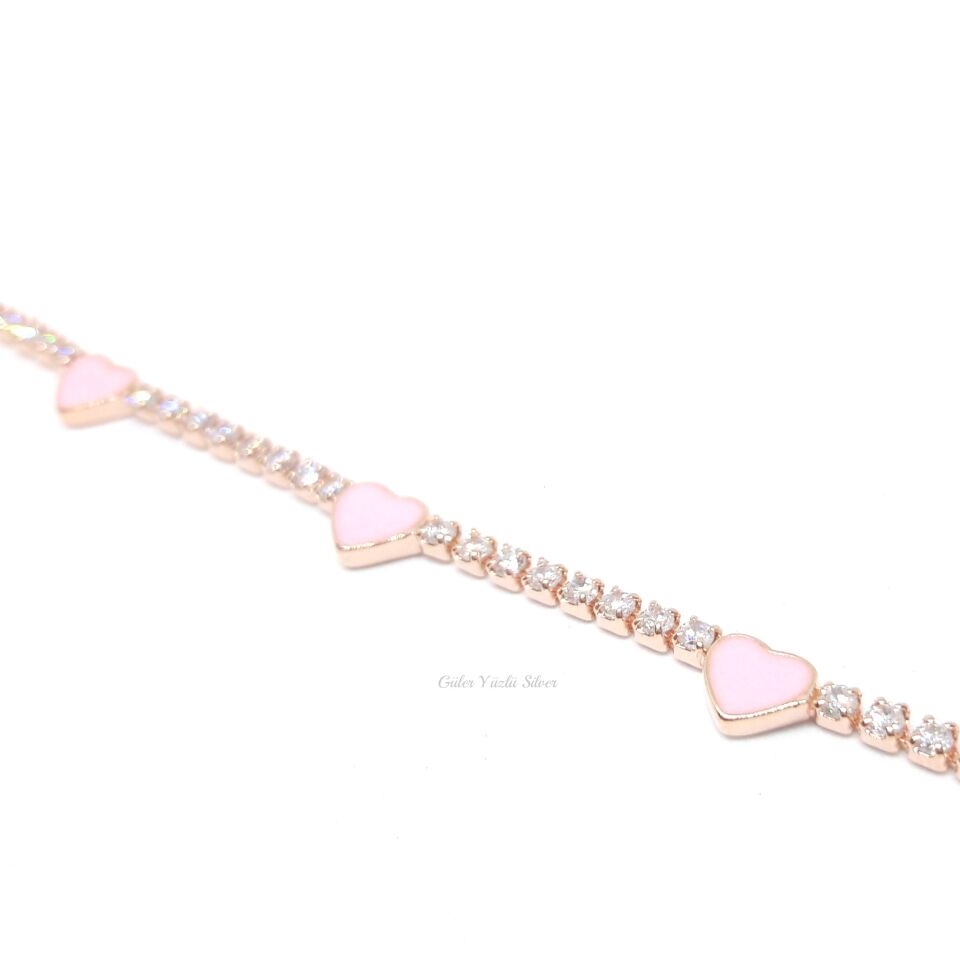 İTHAL PEMBE MİNELİ KALP SU YOLU GÜMÜŞ BİLEKLİK