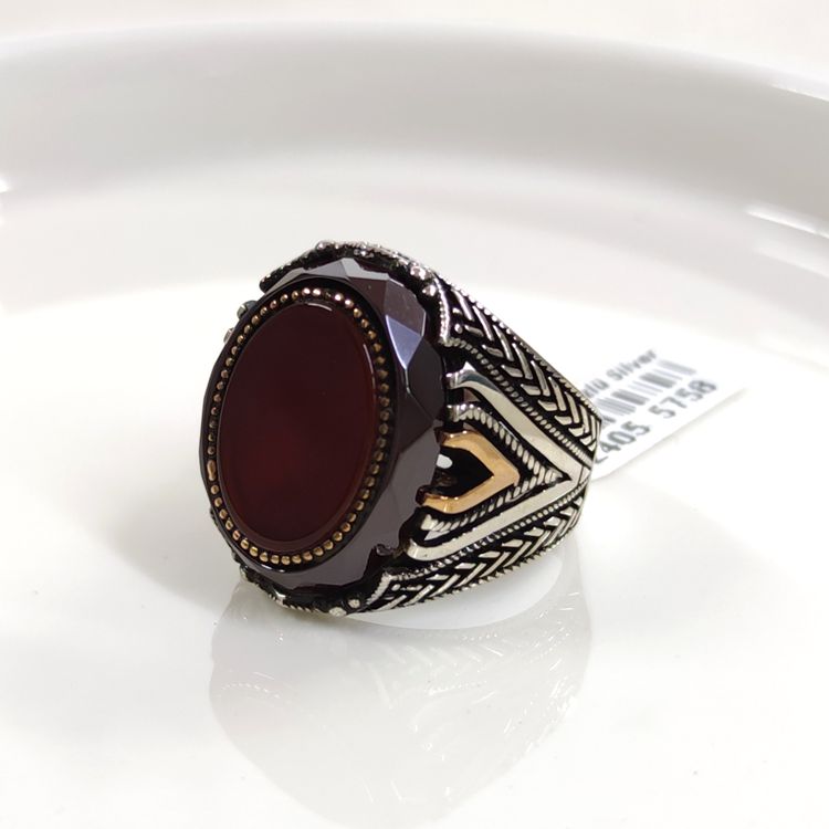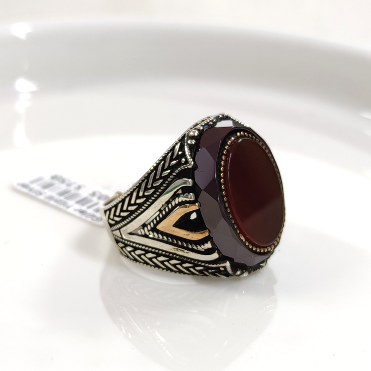 KAHVE TAŞLI OVAL GÜMÜŞ ERKEK YÜZÜK
