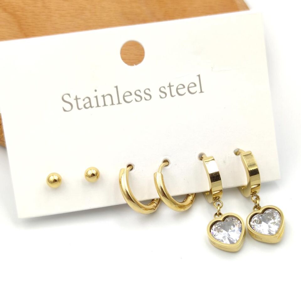 KALP HALKA TOP ÇELİK ÜÇLÜ KÜPE KOMBİN SET