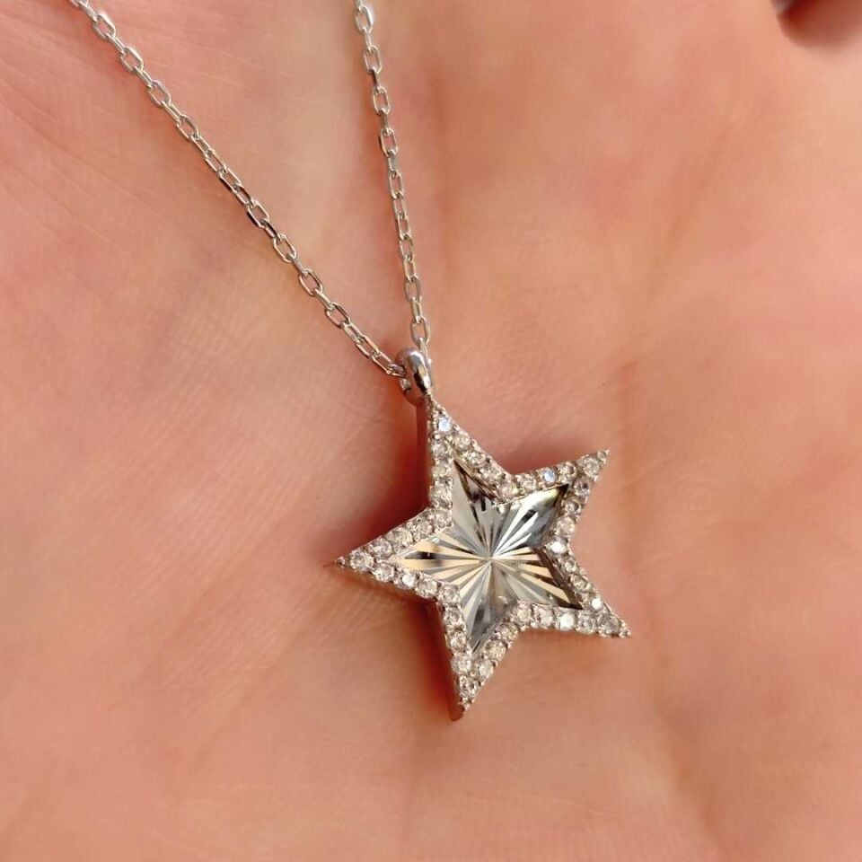 LAZER KALEMLİ YILDIZ GÜMÜŞ KOLYE