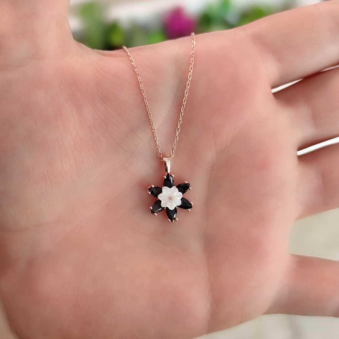 SEDEF DETAY SİYAH ZİRKON TAŞ LOTUS GÜMÜŞ KOLYE