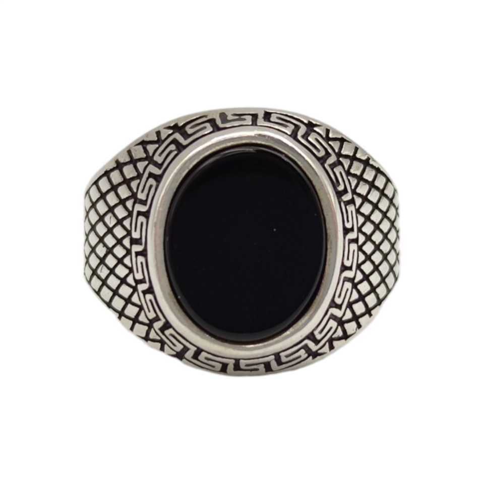 SİYAH TAŞLI OVAL GÜMÜŞ ERKEK YÜZÜK