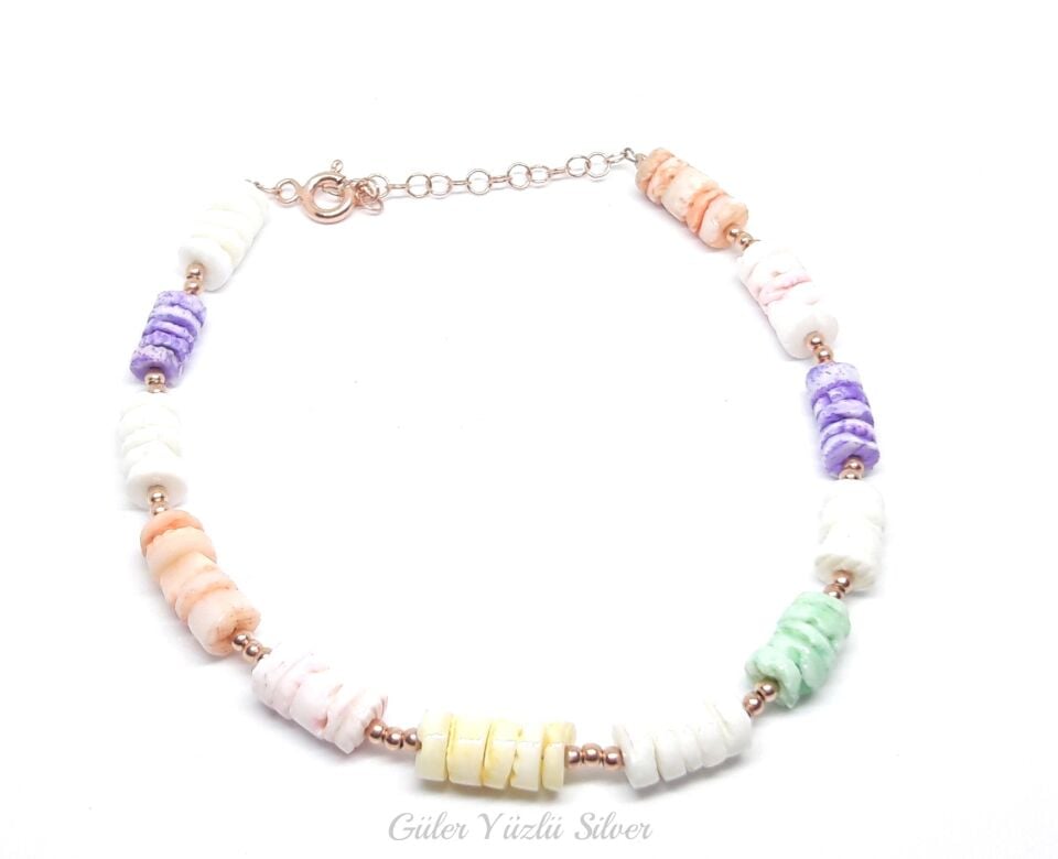 TOP DETAYLI RENKLİ BONCUK GÜMÜŞ HALHAL