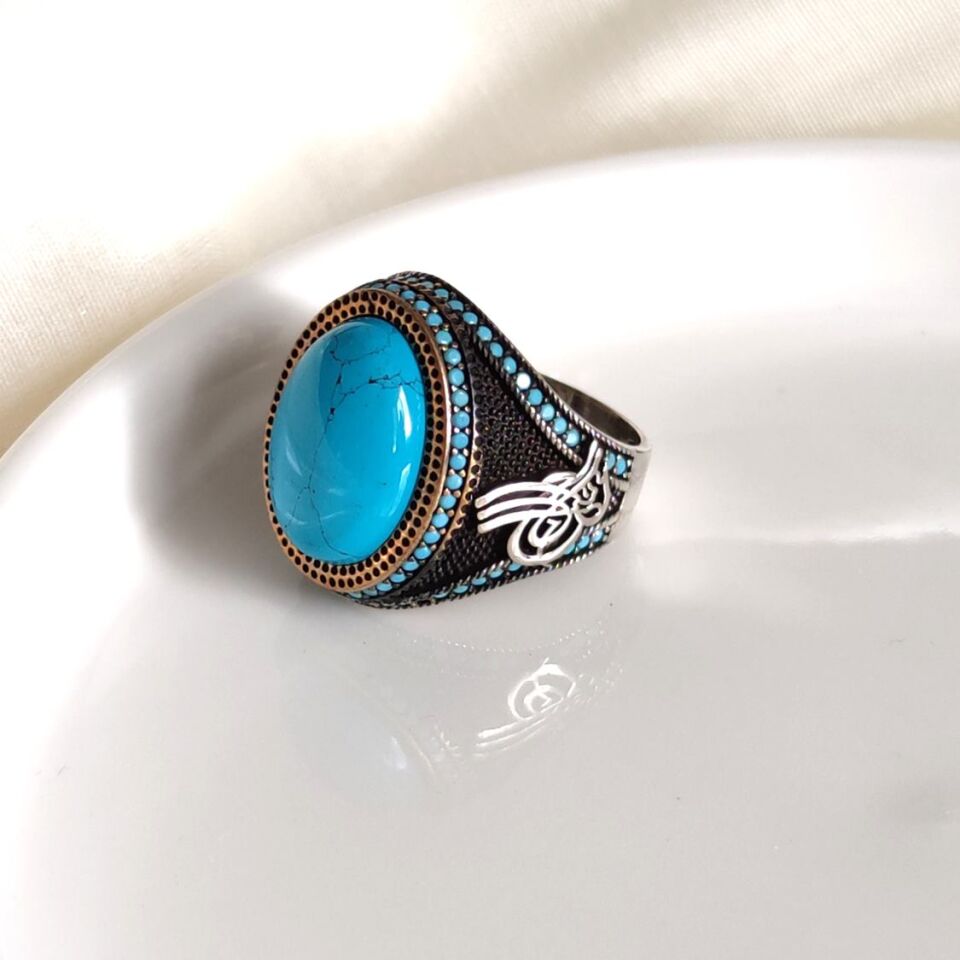 TURKUAZ TAŞLI GÜMÜŞ ERKEK YÜZÜK